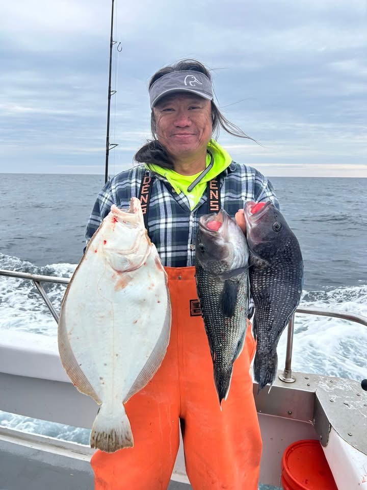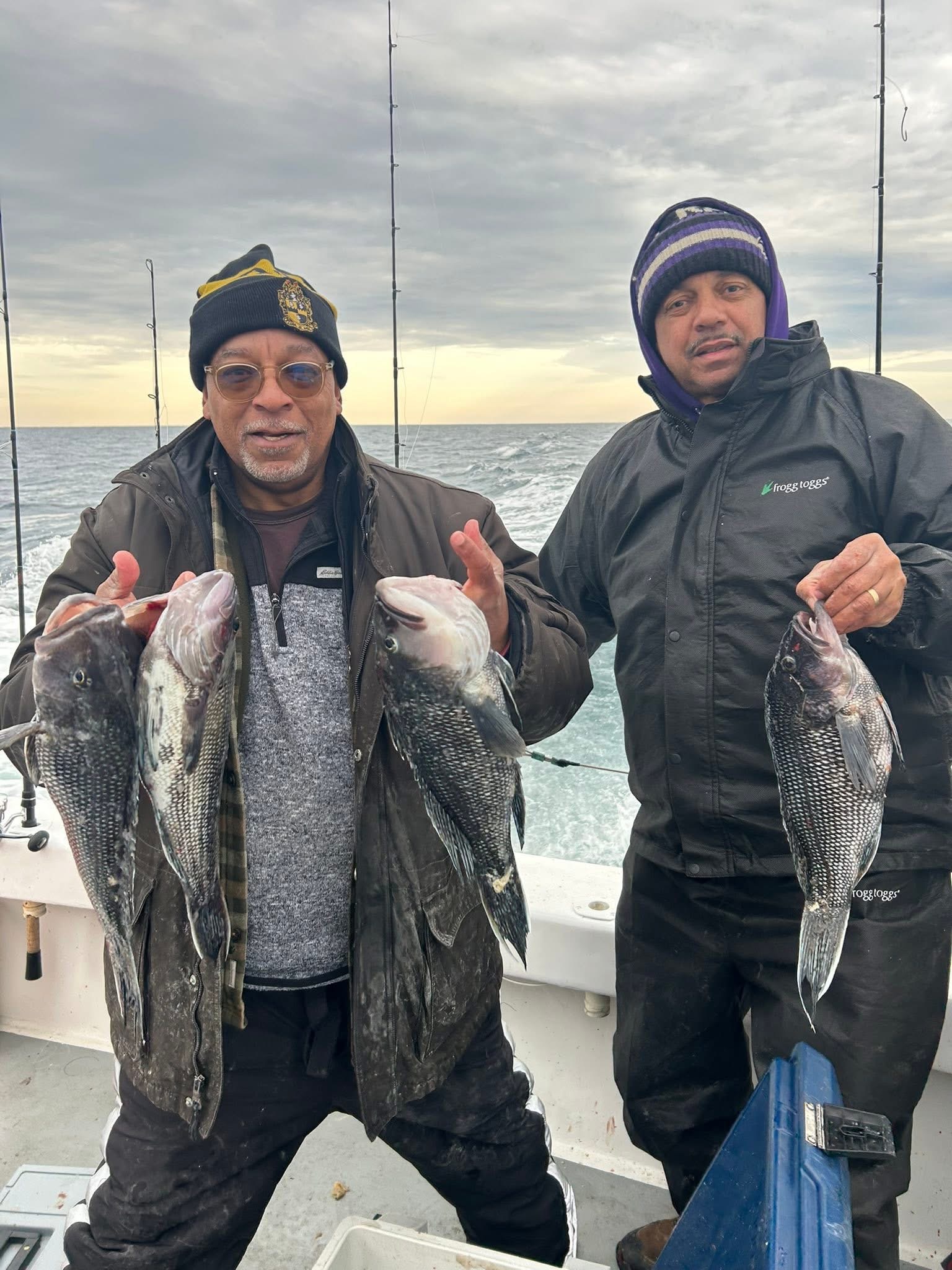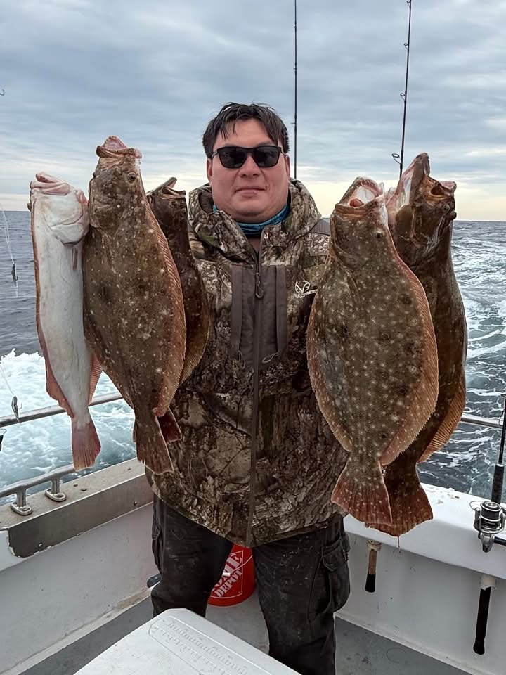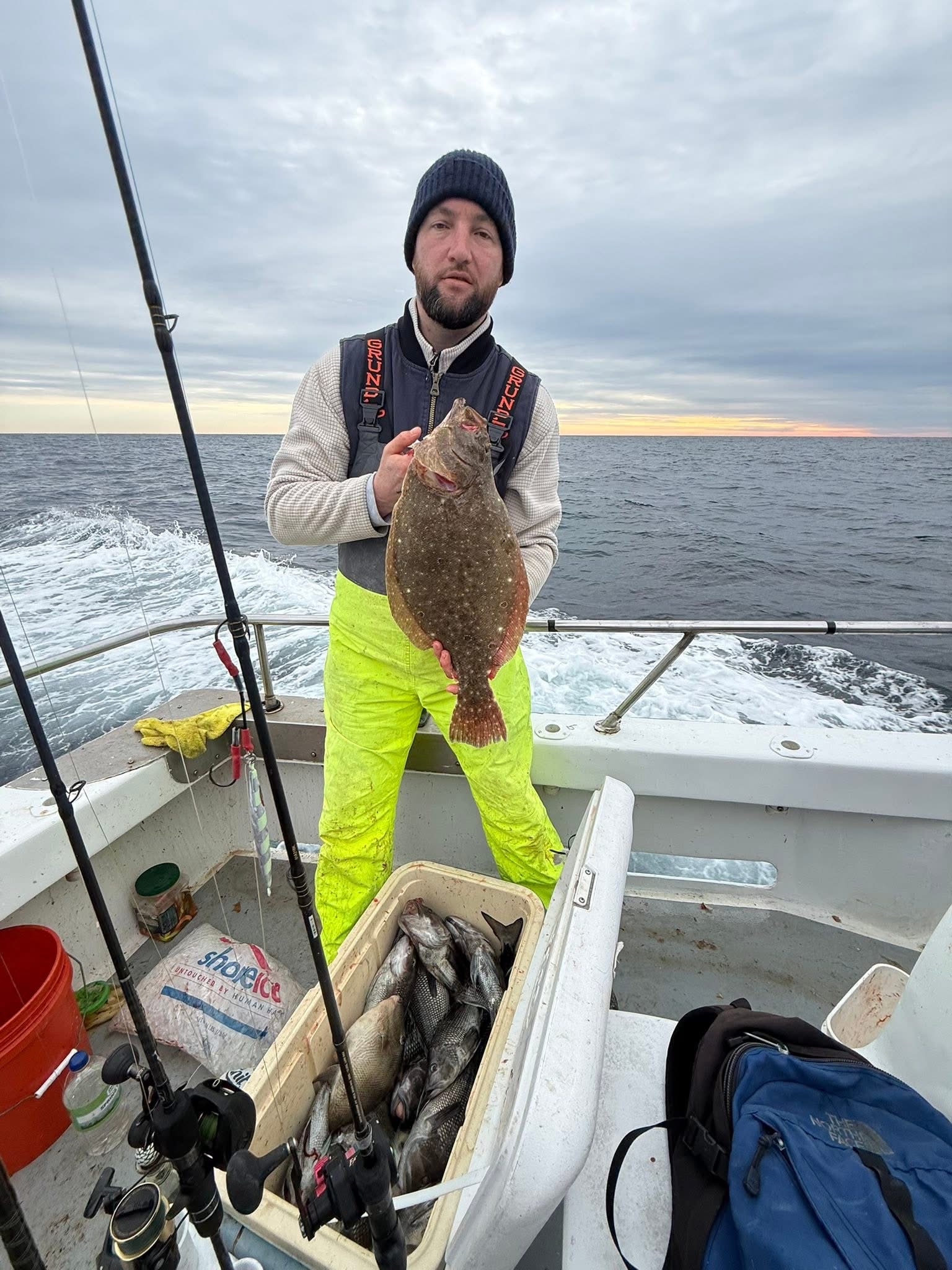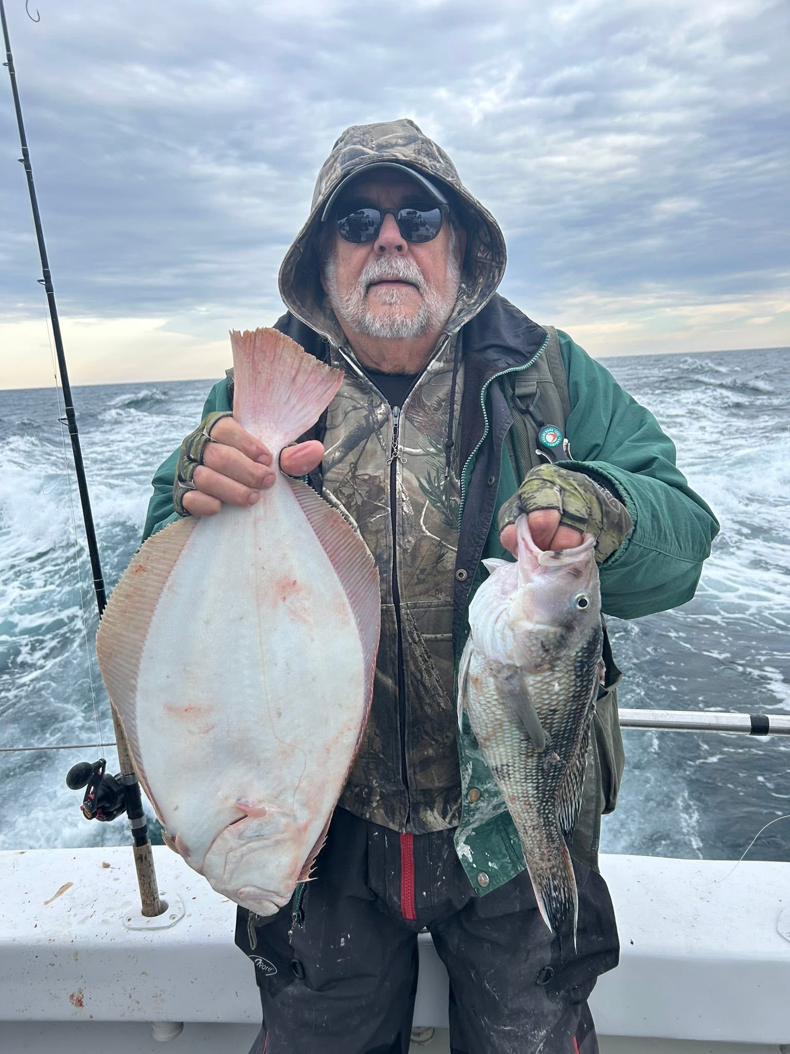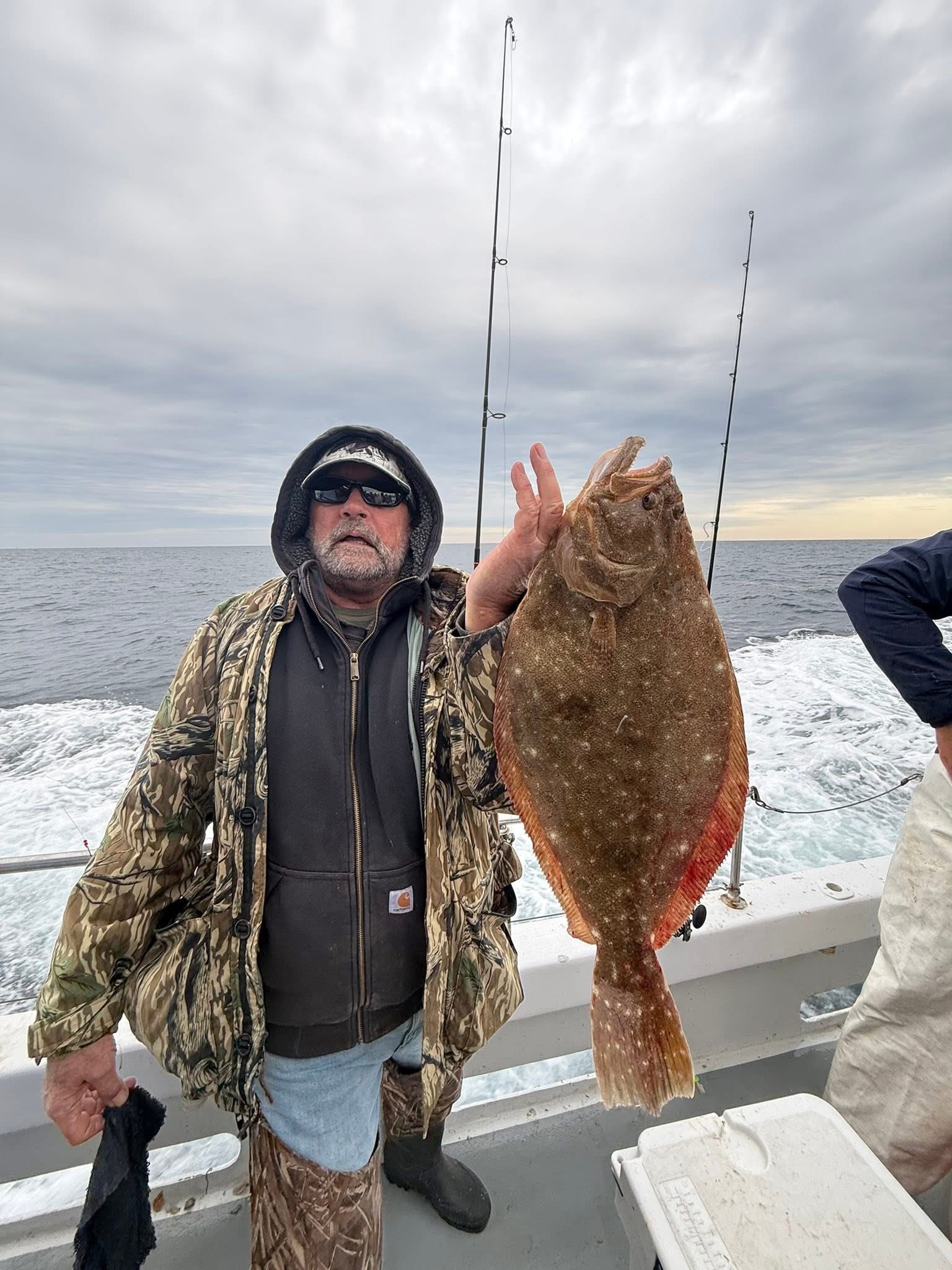 Captain Chris Mizurak on the Angler reported good fishing today with lots of Seabass, some bluefish and Flounder up to 7 pounds.