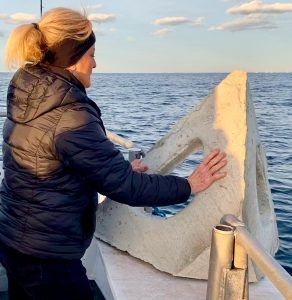 Nice to be out. Real nice. Sunrise beautiful, sea calm. Maddie dropped 20 blocks and a pyramid perfectly atop Tyler’s Reef. Weatherman, however, said if we were going to enjoy the day we’d best be quick about it. Rain and wind were a’comin.