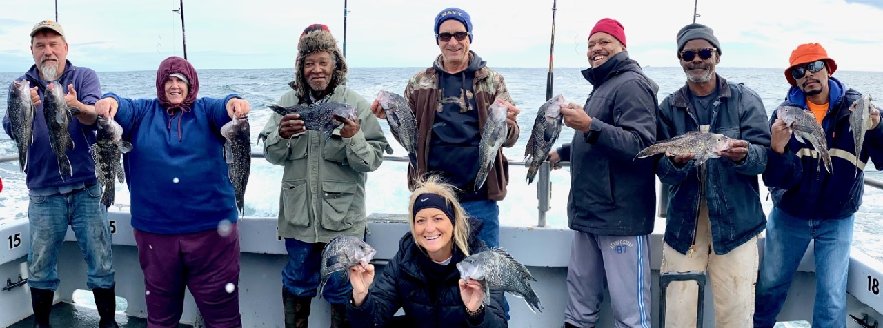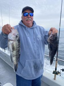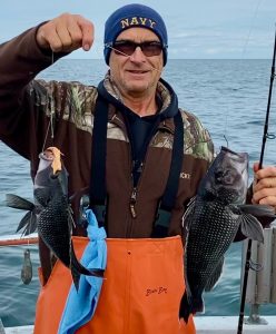 Captain Kevin Twilley of team Fish Bound had a crew on board Double Trouble today and he showed them some very good fishing. Captain Kevin had a limit of sea bass and some flounder up to 7 pounds. They also had two bonus weakfish (grey trout).