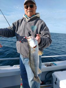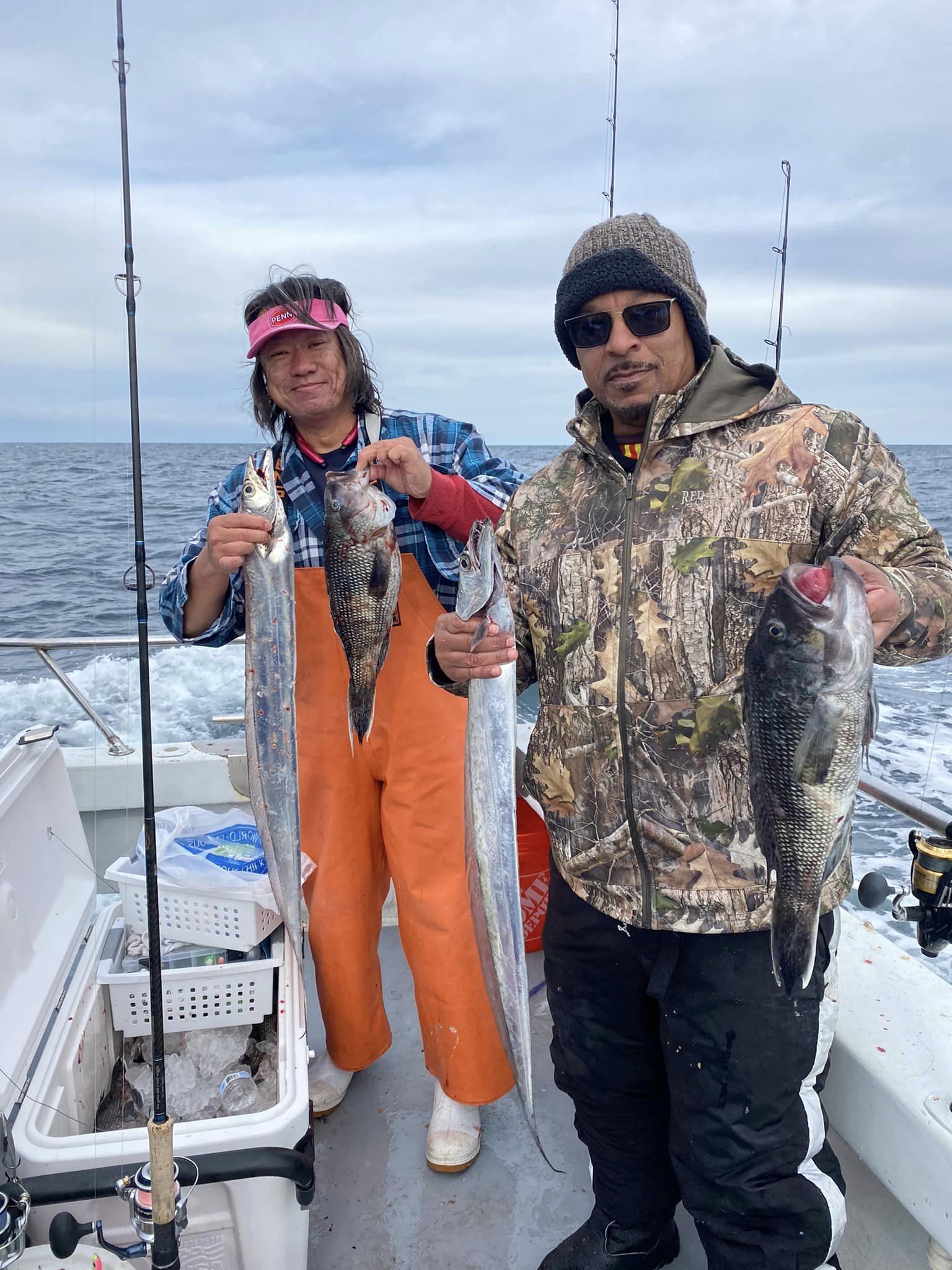 Anglers on board the Angler with Captain Chris Mizurak had a nice day of fishing today with good sea bass action, some cutlassfish, trout and some flounder up to 5 pounds.