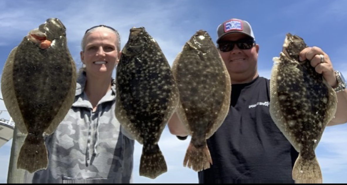 Kristen and I used the Fish in OC Deadly Double in chartreuse to put four nice keeper flounder in the boat up to 18 1/2″. Gulp and flatworms tipped with a live Atlantic Tackle minnow were the ticket.