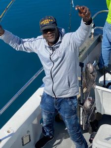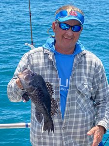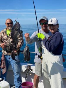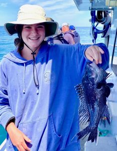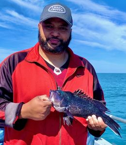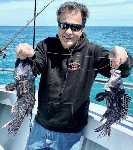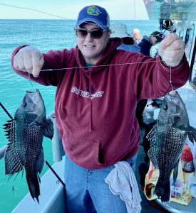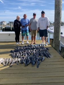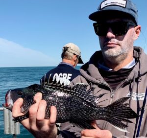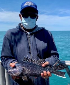 Captain Chase Eberle of Chasin’ Tides Charters had a sea bass limit for his six man crew today as well in the flat calm seas.
