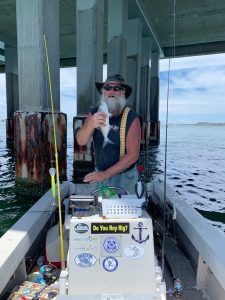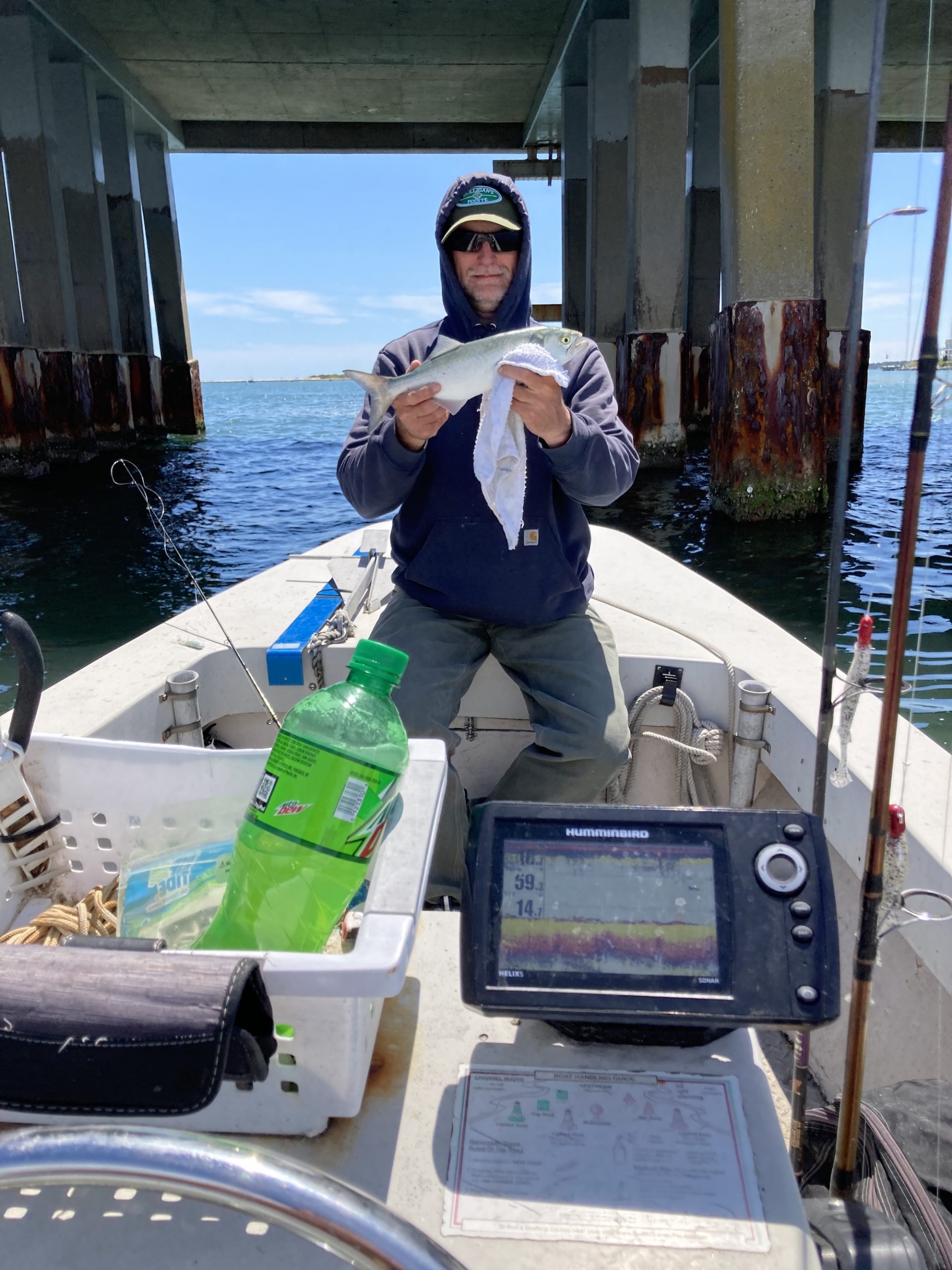 Big Bird Cropper and Shawn found the snapper bluefish under the route 50 bridge and used Roy Rigs to put some in the boat.