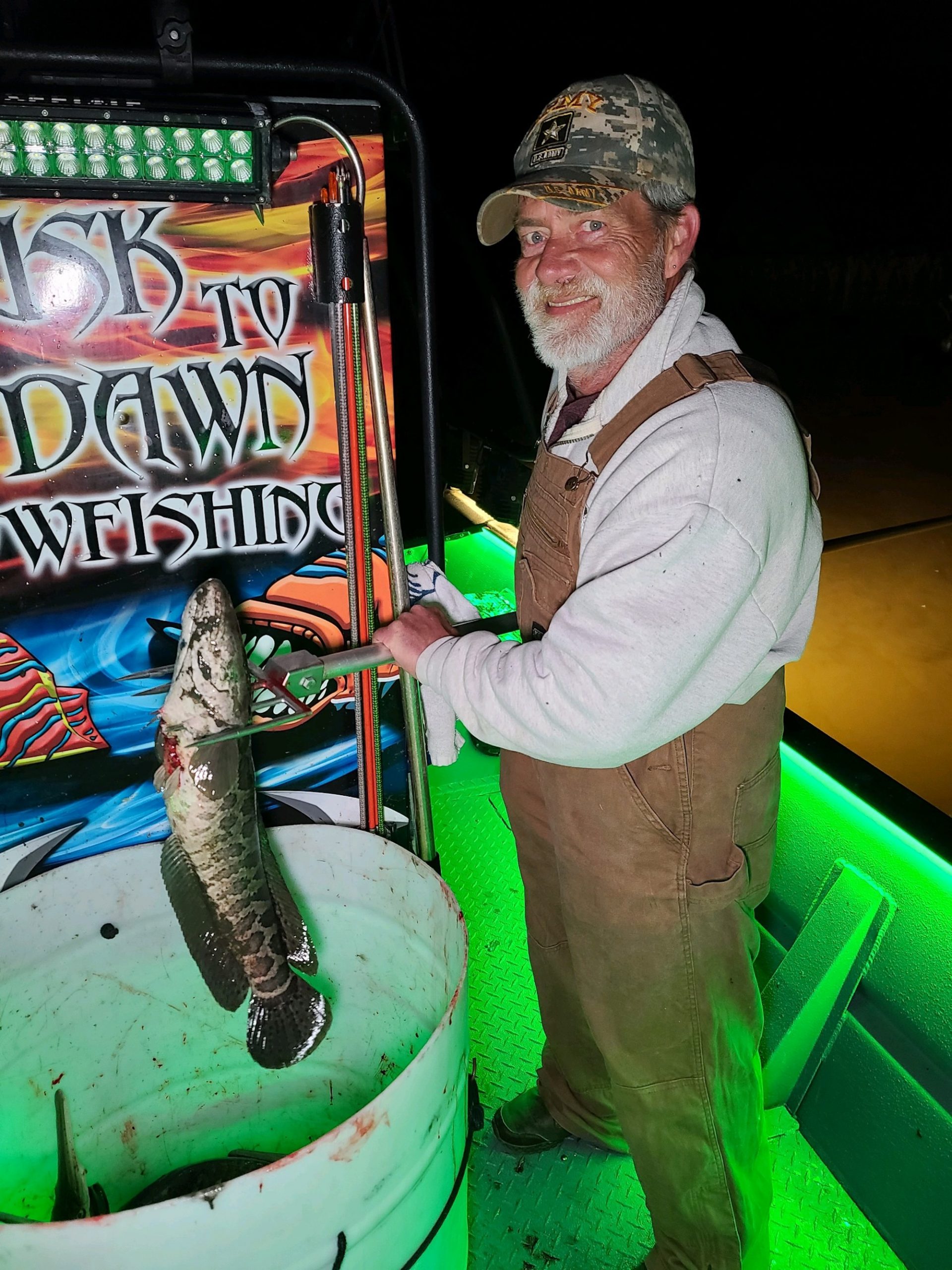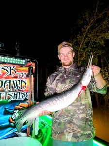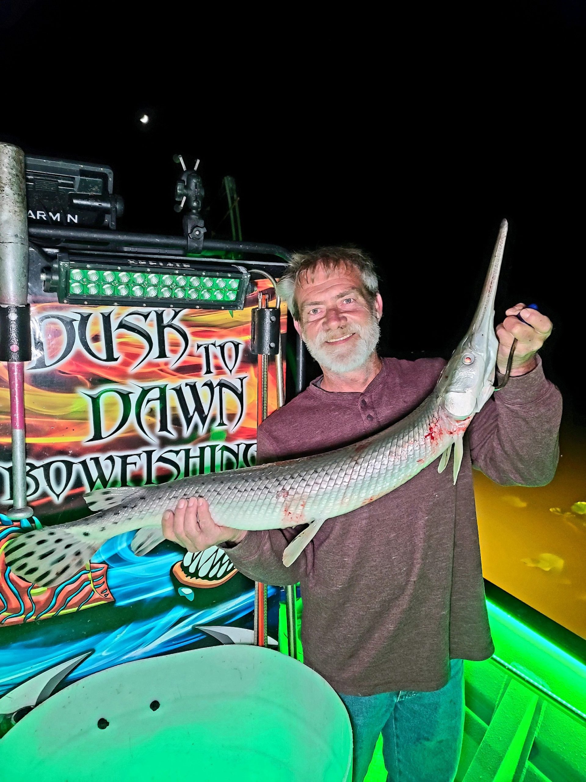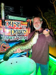 Captain Marc Spagnola of Dusk to Dawn Bowfishing had another good night of shooting for his clients putting them on awesome action with snakeheads, carp and long nose gar.