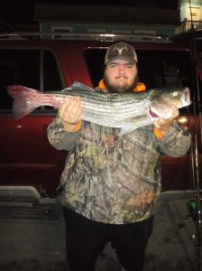 Cody Martin caught this 31″ keeper rockfish last night at the route 50 bridge using a 1 1/2 Oz jig head with a 5″ shad. Photo by his dad Buddy.