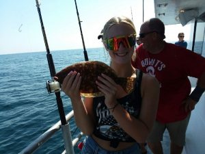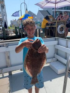 This young angler caught himself a nice keeper flounder on board the Happy Hooker out of the Talbot Street Pier today.