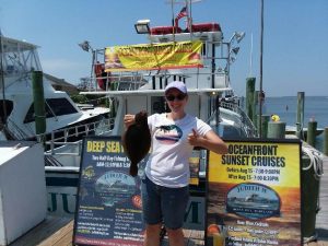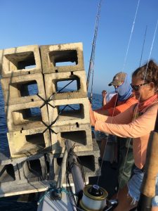 Susie Werner of South Bethany was a today’s guest reef builder. She also fought our 18 pound mahi for a while before handing off to Bill Mets of Rockville MD who brought it to gaff.