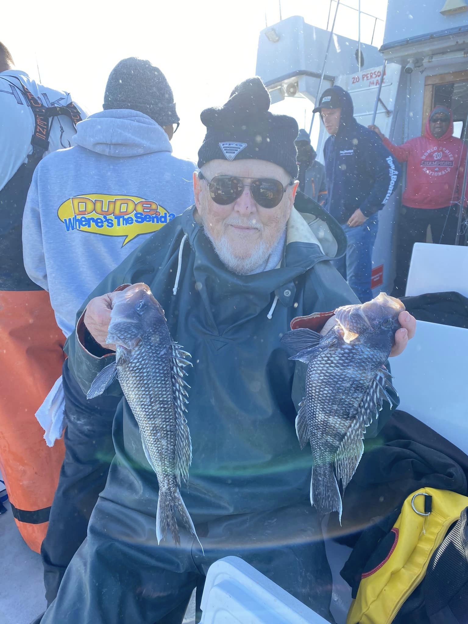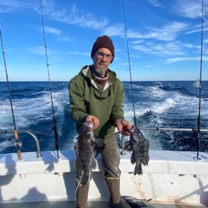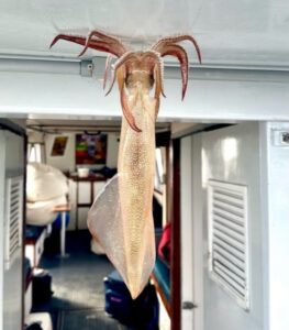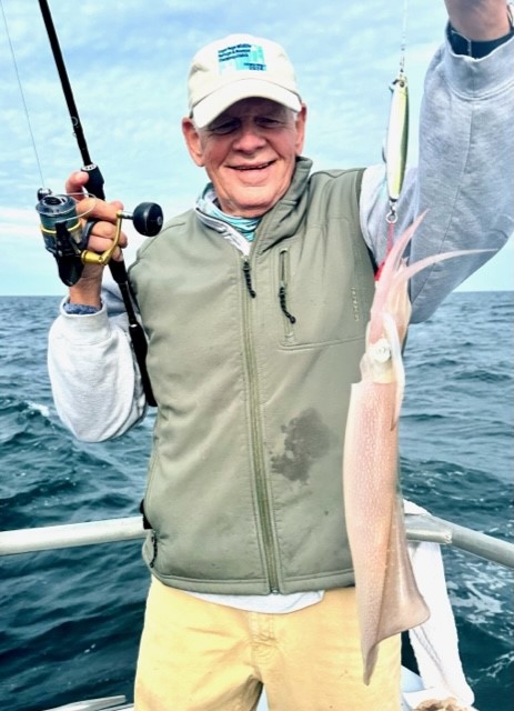 Captain Monty Hawkins of the Morning Star didn’t have a great day today, but he did have a good day with a few sea bass limits and one unique catch of a live squid.