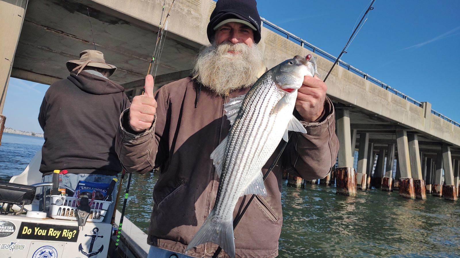 Dean Lokey of OC Kayak, Shawn Flaherty and Big Bird Cropper had some fun catching and releasing a bunch of rockfish and one red drum today in Roy Rigs.