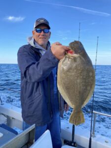 Hard to believe you’ve got to go further into the ocean to catch flounder and sea bass then you do to catch bluefin tuna, but it is what it is. Especially when you have the day Captain Chris Mizurak of the Angler had with several big flounder coming over the rail with a 7 pounder, “a couple of 8s” and the biggest fish at over 10 pounds.