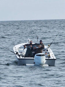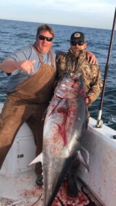 “Heavy” Todd, Curt Presnell and Cody Presnell had a nice day just a few miles off the beach when they wrestled in this 165 pound bluefin tuna.