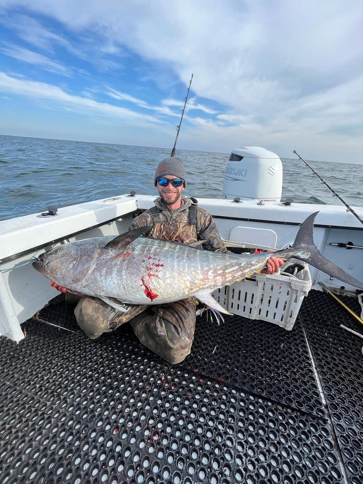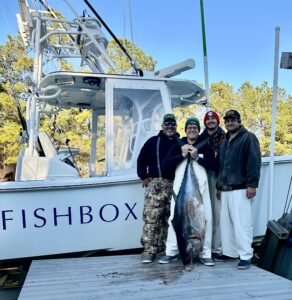 Steve Hadley, Eric Farrell, Stu Farrell and Phil Fields fished just 6 miles off the beach on board the private boat FISHBOX and landed this nice 58″ bluefin tuna.