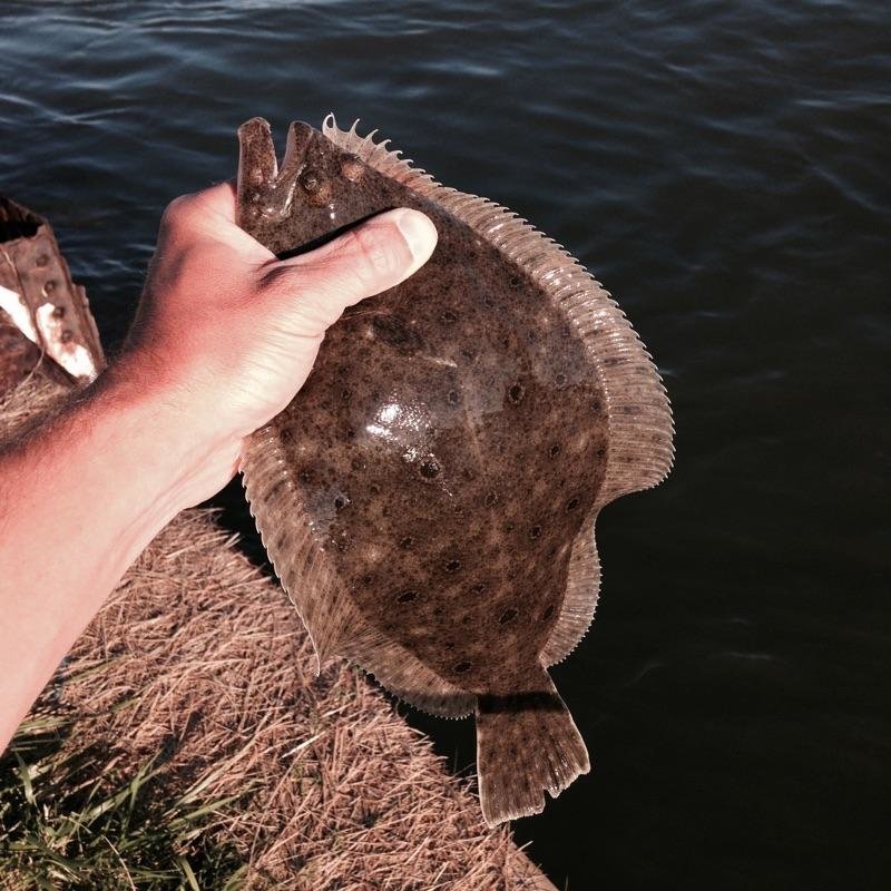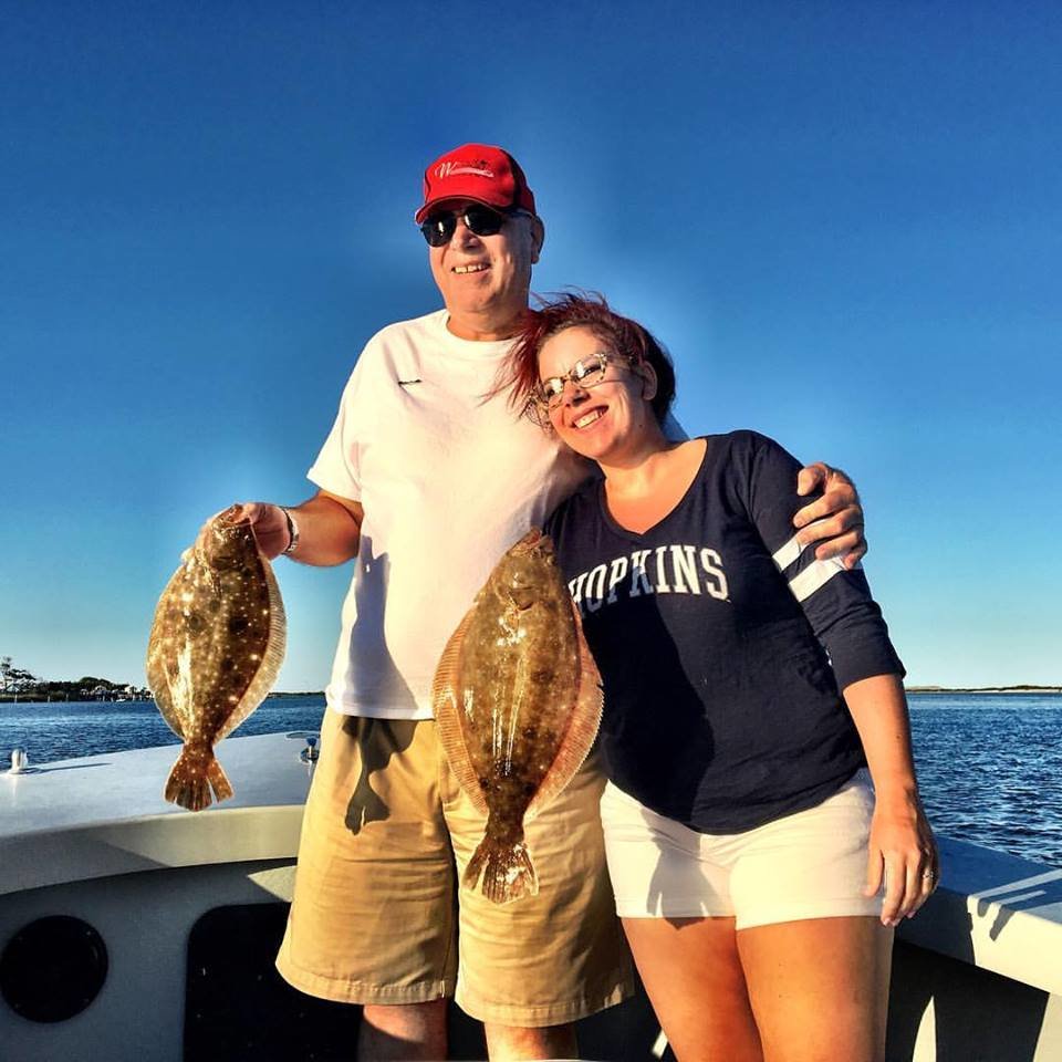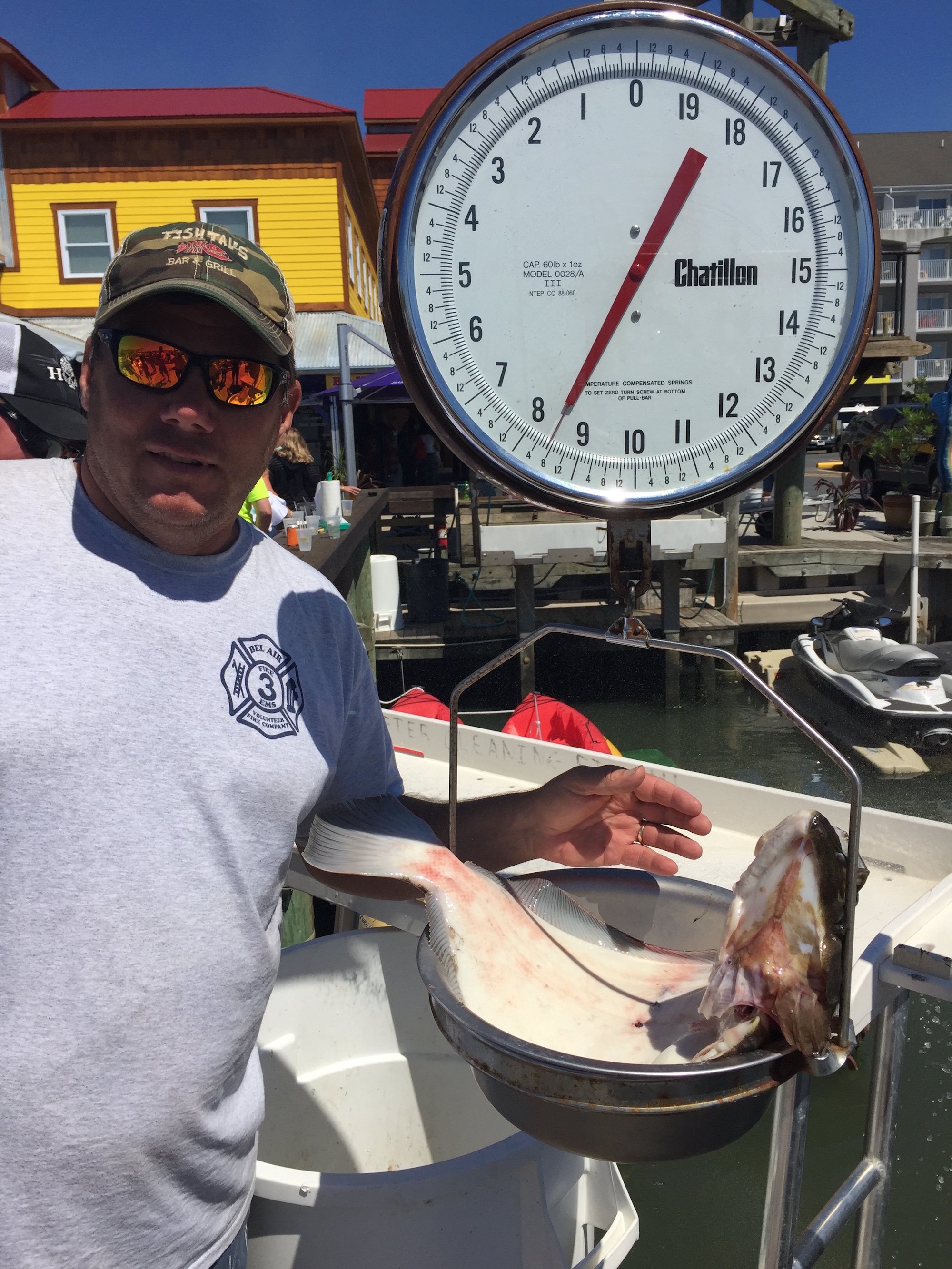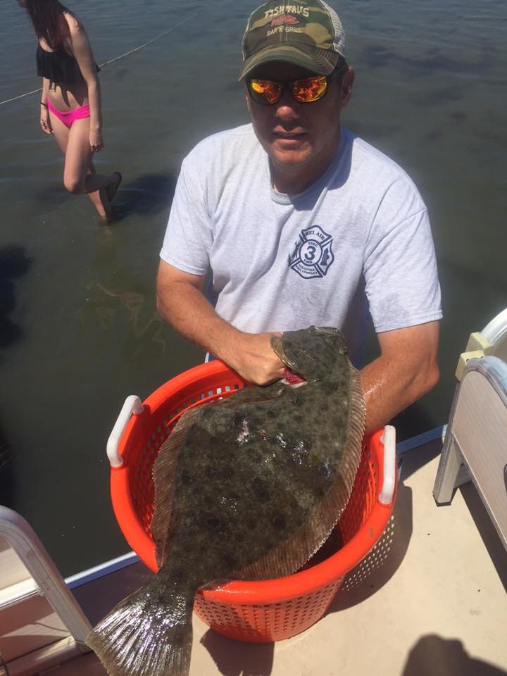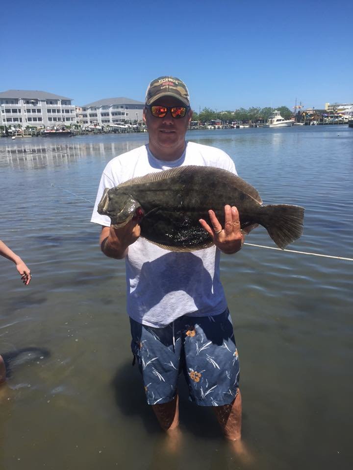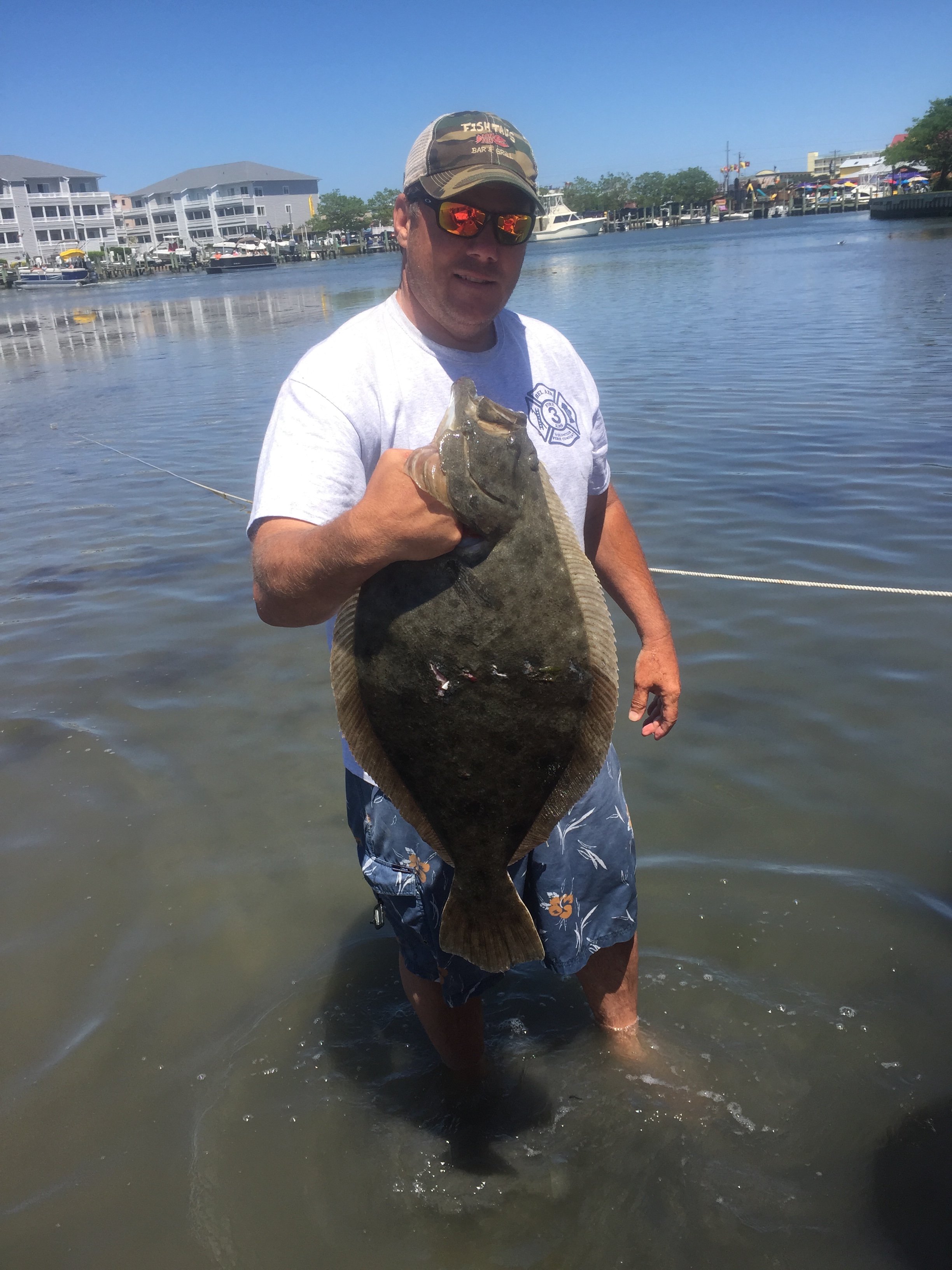 If you missed the report from earlier you’ll be surprised to find out that Mark actually captured this flounder while clamming. He saw the big fish swim by and pounced on him with his clam rake and was able to “catch” the big fish that way. I got in touch with a friend of mine with the MD Department of Natural Resources and he confirmed that it was a perfectly legal catch……and one hell of a story!