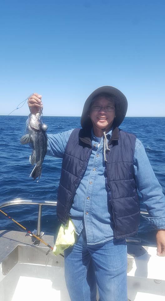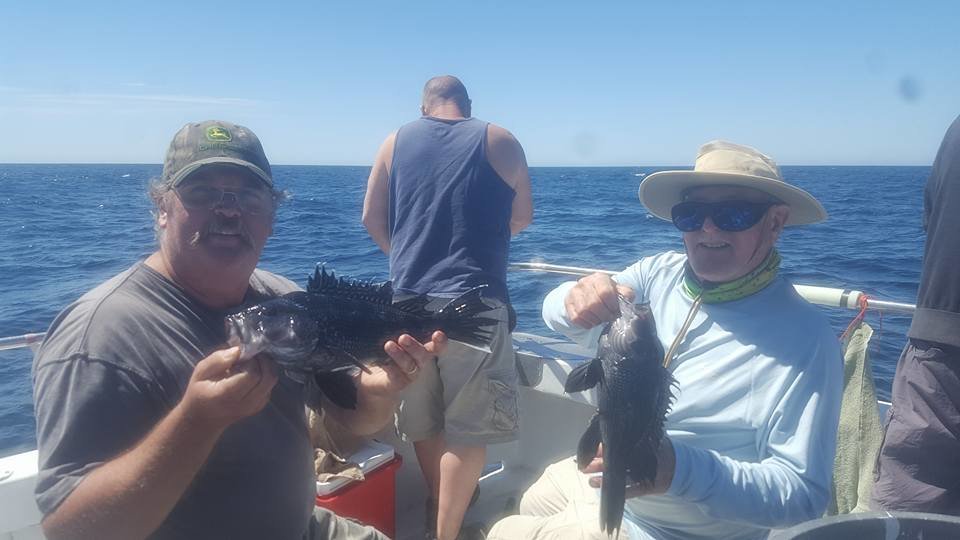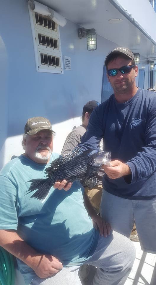 Captain Chris Mizurak on board the Angler reported rough conditions in the ocean today, but decent fishing with some nice sea bass up to three pounds.