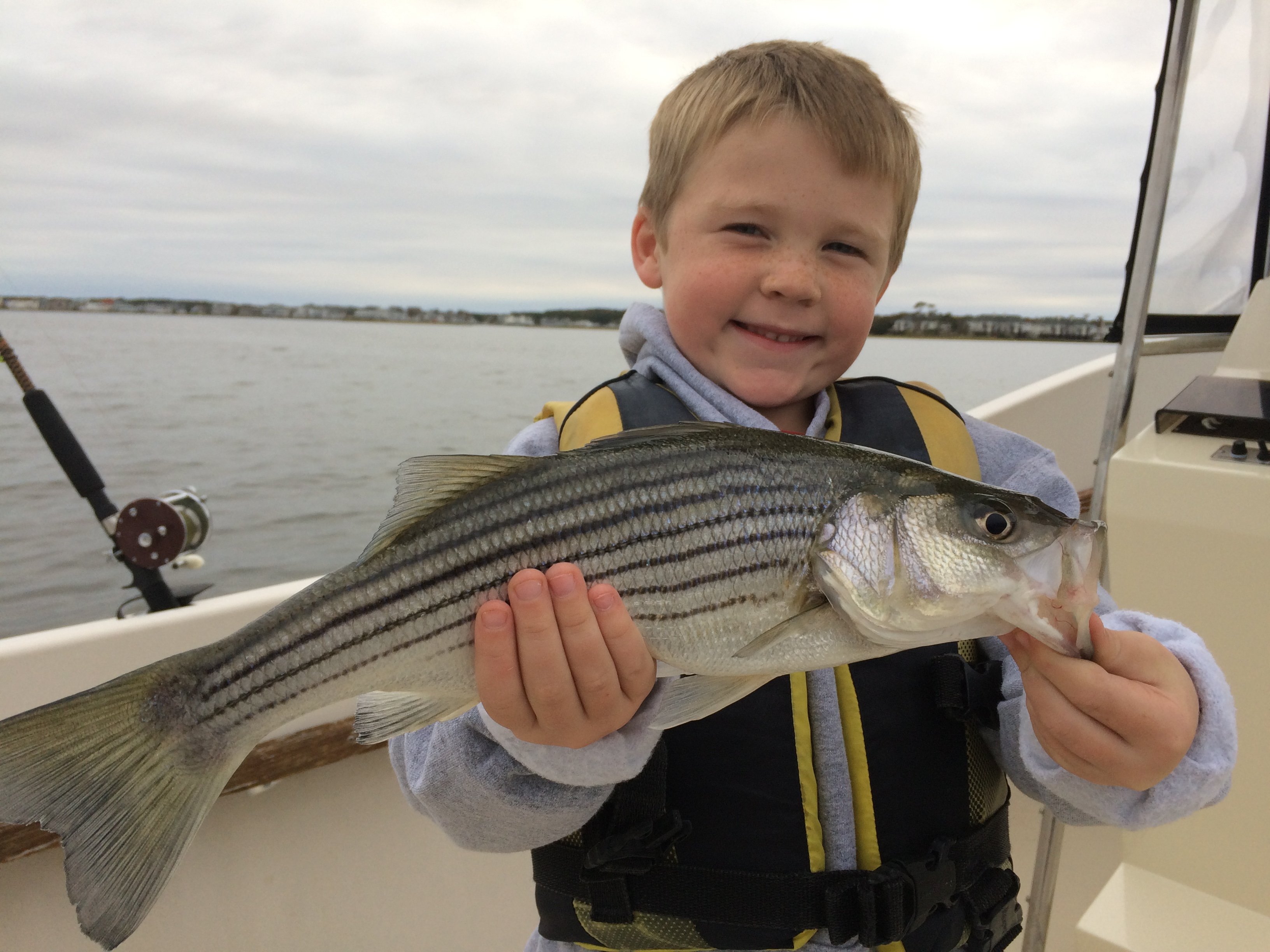 My buddy John Wooldridge sent me a photo of his son Grayson with his 9th striper of the fall season today. John reports……Greyson’s fish was caught & released in the mouth of the St Martin River today on the outgoing tide while trolling with Storm bunker type lures. We saw a small pod of dolphins feeding on an abundant supply of menhaden at the mouth of the river too. The bait fish were showing up on the fish finder near the bottom inside of the Rt 90 bridge real thick. Water temp was 58°. A little warm still but the smaller (14-15″) fish are are starting to show up in pretty good numbers at certain times & tides.