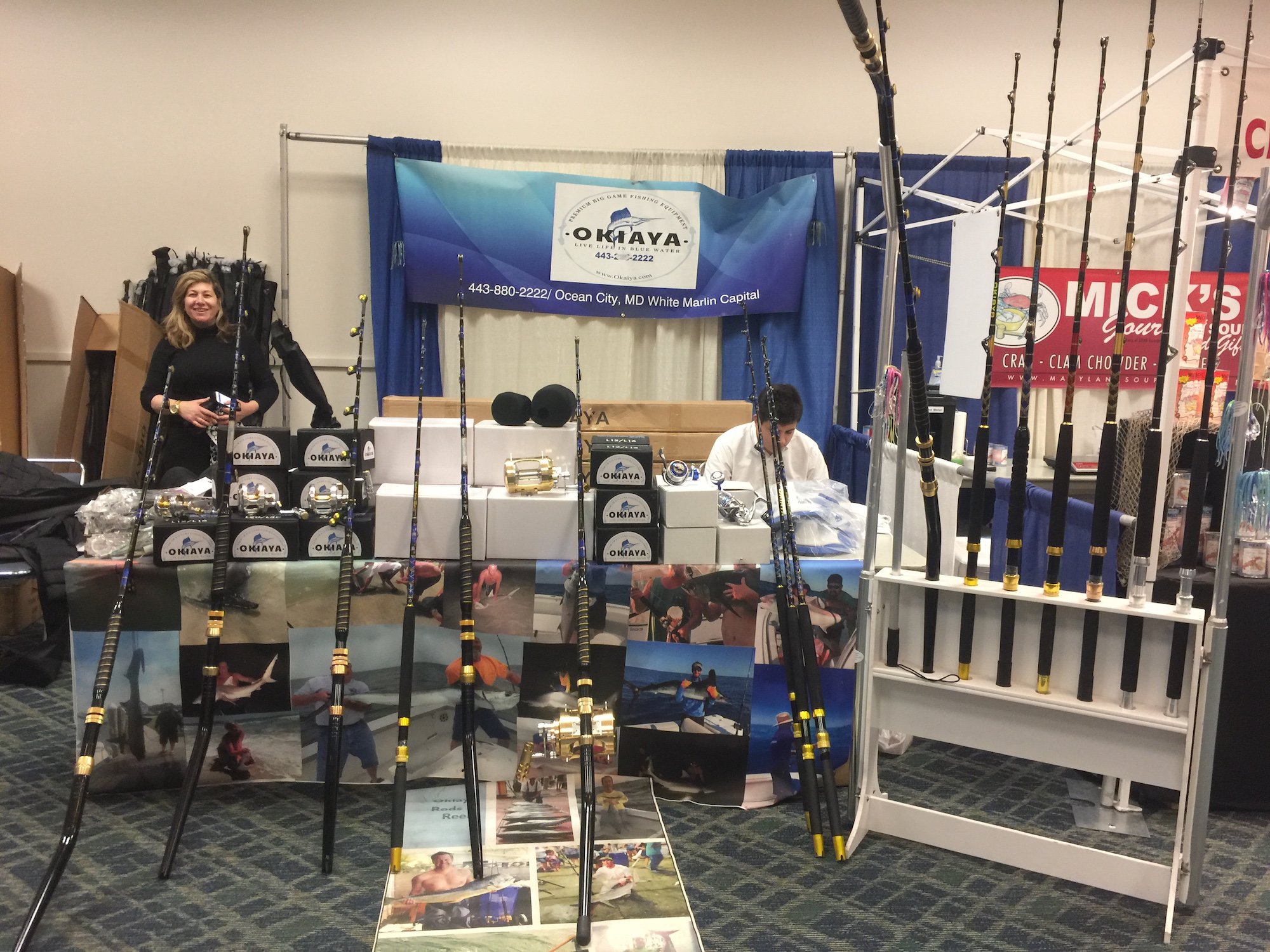 Just down the hallway in the East room you will find Fish in OC sponsors Okiaya fishing rods, An Optical Galleria and The Ocean City Fishing Center. Kathy from the Ocean City Fishing Center and Jake from Sunset Marina are in booth # 507 and have boatel and slip information for both ports. They also have a flier for the President’s Day Sale going on over at Atlantic Tackle in West Ocean City. This is a BLOWOUT sale at Atlantic Tackle that you should stop over and see with end of season pricing on most brands.