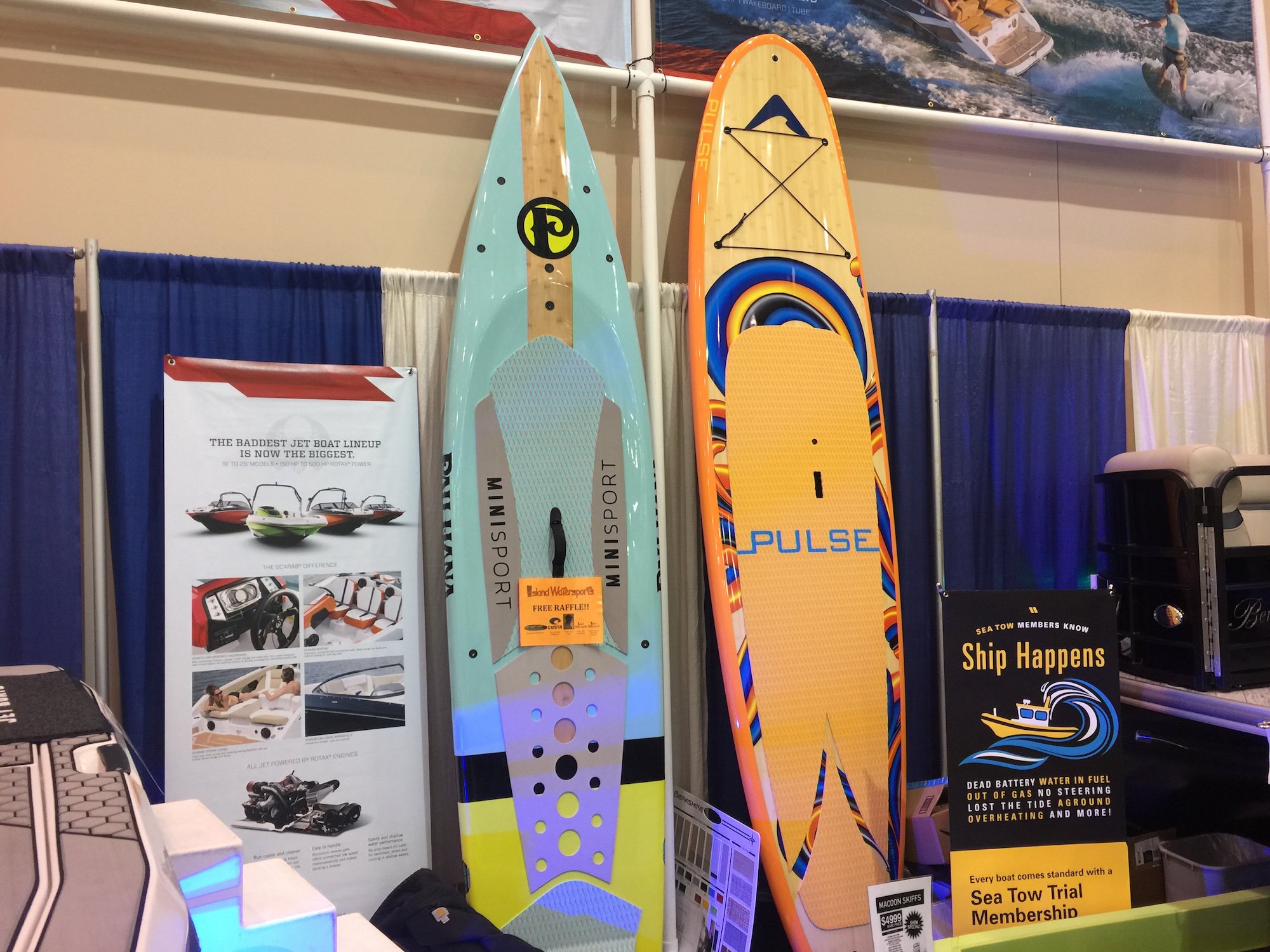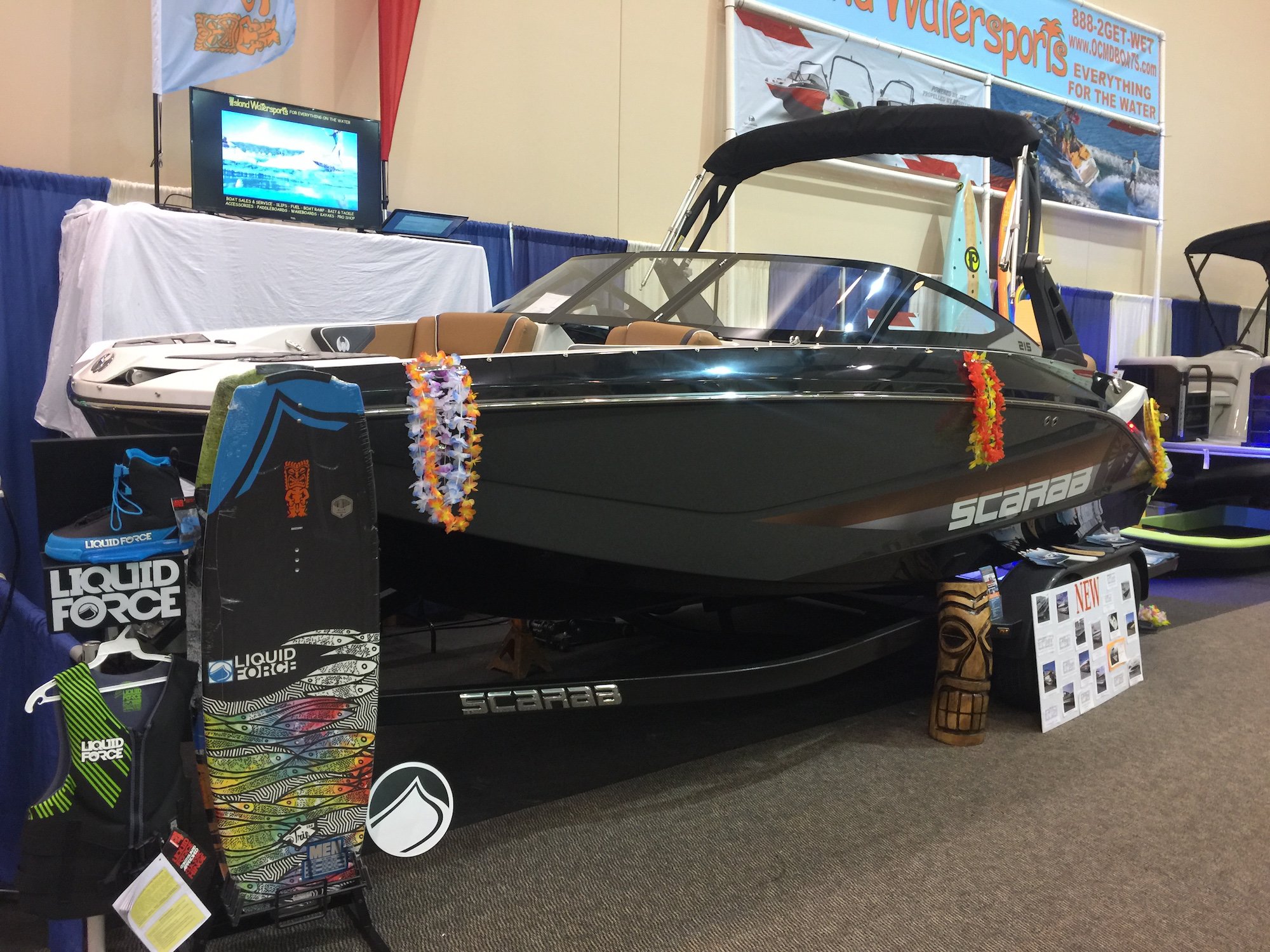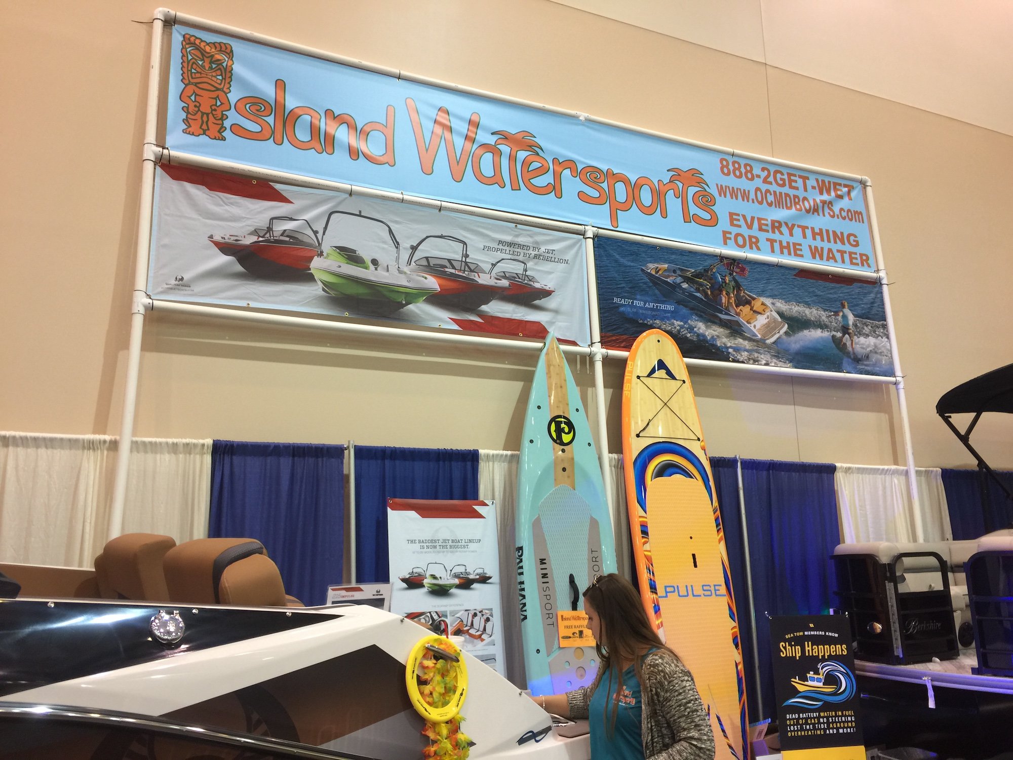 Mike and the guys from Island Watersports are just down the wall in booth 414. Mike has some awesome boat show pricing on pontoon boats and Scarab Jet Boats. He also has stand up paddle boards and a new line of skiffs that you’ve got to check out.