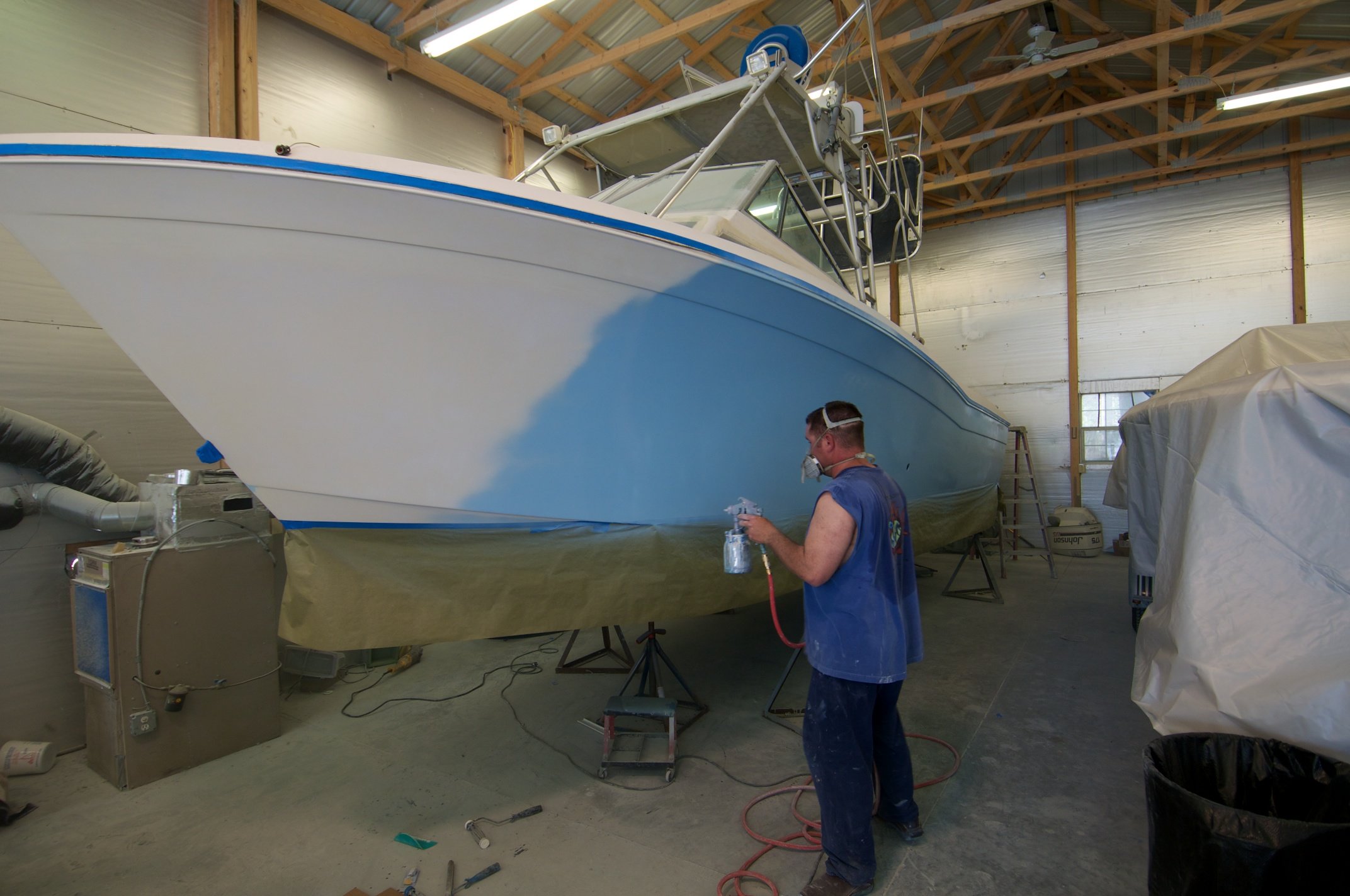 Jim’s Marine uses the latest in high tech finishes in our state-of-the-art indoor paint shop. We can handle any boat from 16 foot skiff to 70 foot sport fishing yacht.