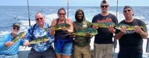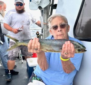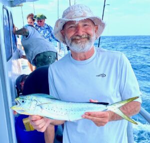 Captain Monty Hawkins of the Morning Star didn’t have much luck with the bottom critters today, but he did have a boat limit of mahi.