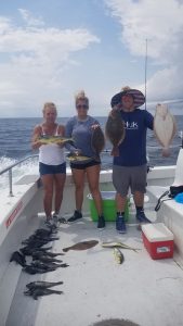 Anglers on the Angler with Captain Chris Mizurak had a good day enjoying calm seas and good fishing that included lots of sea bass and a couple of limits of flounder.