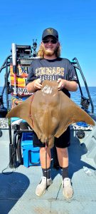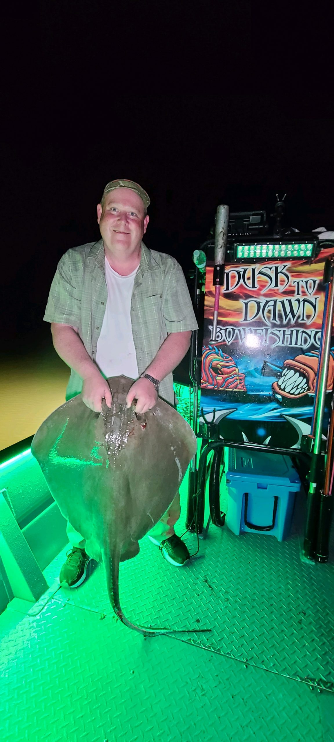 Captain Marc Spagnola of Dusk to Dawn Bowfishing has been showing his clients good shooting with cow nosed and southern rays and some hound fish both day and night.