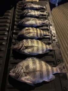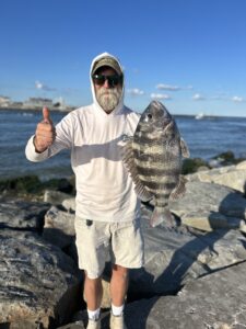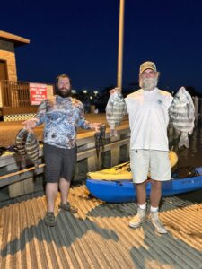 Big Bird Cropper sent these photos of Shawn and Colby, who had a great day at the south jetty after kayaking over from the commercial harbor. The guys had some nice sheep’s head up to 22 inches.