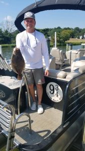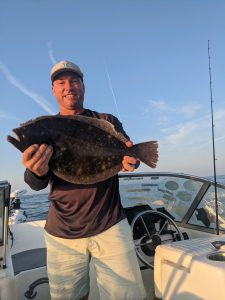 Svend Sheppard caught this keeper flounder in the Thorofare this morning using the Fish in OC Deadly Double.