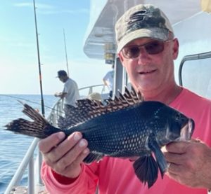 Captain Austin Ensor and his #gang on the Primary Search did a little deep dropping today in between wahoo trolls and they found some jumbo sea bass. Captain Austin reported a very good class of fish with one huge fish at 25.5″ long. The digital scale read 6.3 pounds so I think it’s safe to say it was a big one!