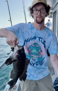 On our very last drift and perfectly atop a mountain of sea bass – crickets. Except for the guy who caught back to back keeper fluke and limited ..