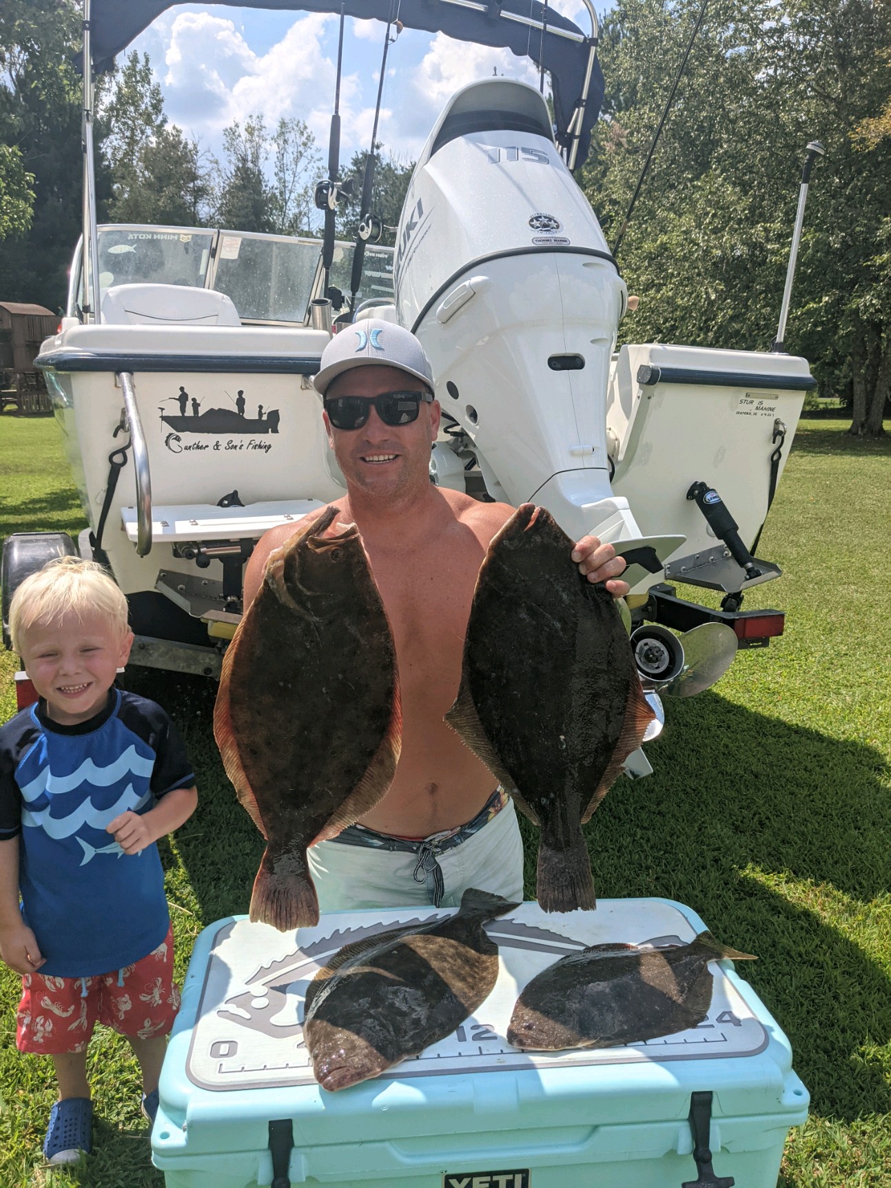 Blake Gunther and crew hit an inshore reef today and had a two man limit of flounder in no time.