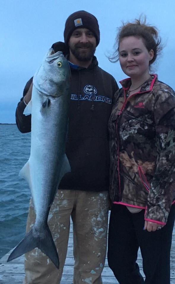The Oceanic Pier in downtown Ocean City has been a hot spot for the big bluefish for a little while now. Bear sent in a couple of photos today of some nice fish that were caught this morning after the heavy mist let up.