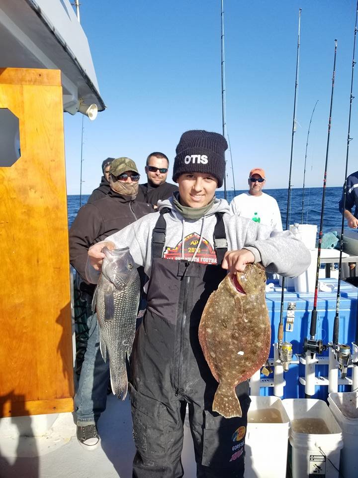 The weather is tough to predict any time of year, but this time of year it is especially tough. The sometimes major difference between the forecast and reality can make it tough sledding for boats that go fishing expecting one thing and are greeted with something else. That was exactly the case for Captain Chris Mizurak and the crew of the Angler today. The weatherman predicted calmer conditions today than what was experienced, but Captain Chris was still able to put his anglers on some good fishing with triggerfish, sea bass up to 3.5 pounds and flounder up to 4.5 pounds.