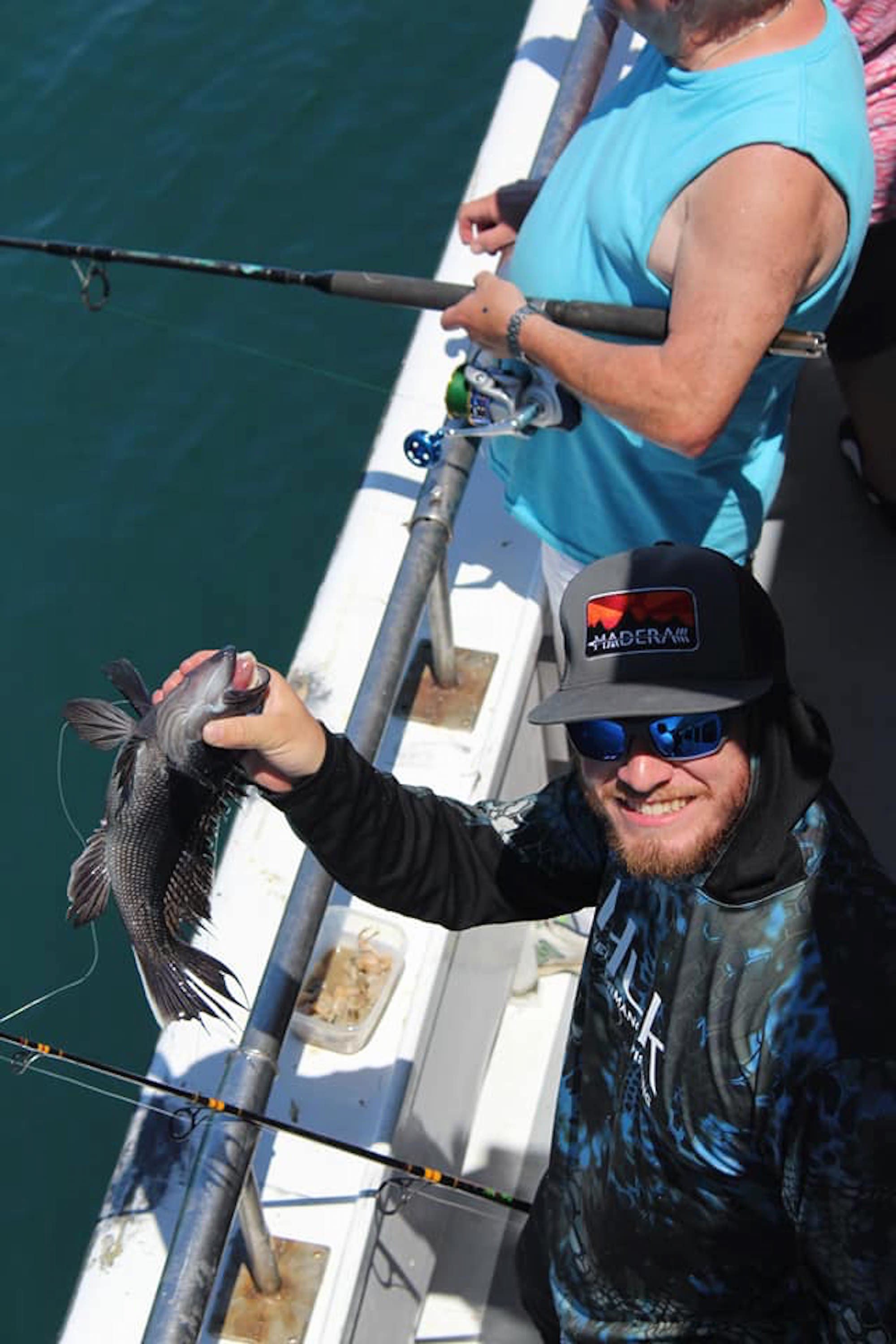 Ocean going party boat anglers got to experience flat calm, beautiful sea conditions today and on board the Ocean Princess with Captain Victor Bunting they also got to experience some good fishing for sea bass.