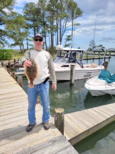 Lamont Hilbert dodged the rain today and found this 17″ keeper flounder behind Assateague Island.