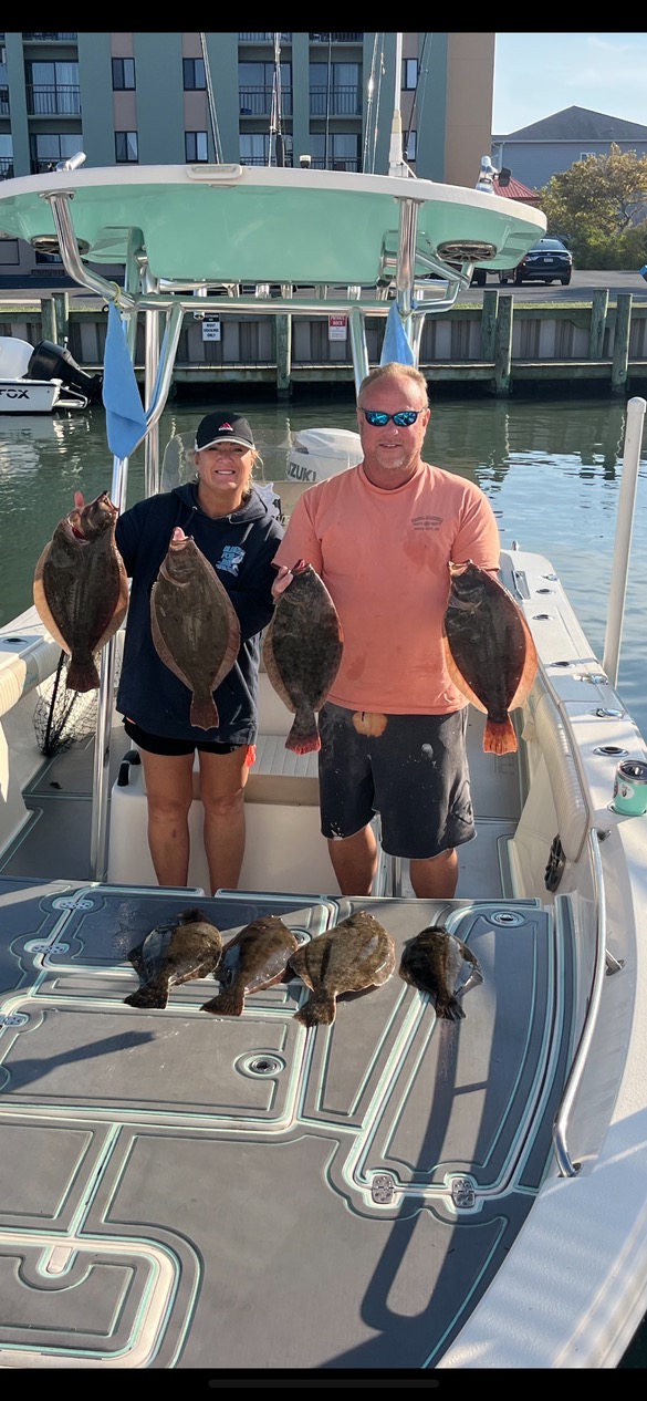 Yesterday, Rich Daiker and Stacey Schindler fished the route 50 bridge with live bunker and caught their limit of nice flounder up to a sweet 24.5″.