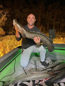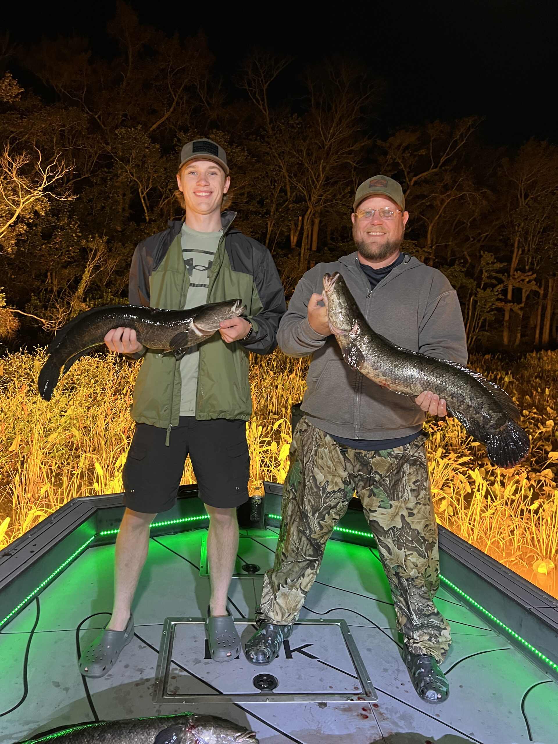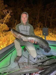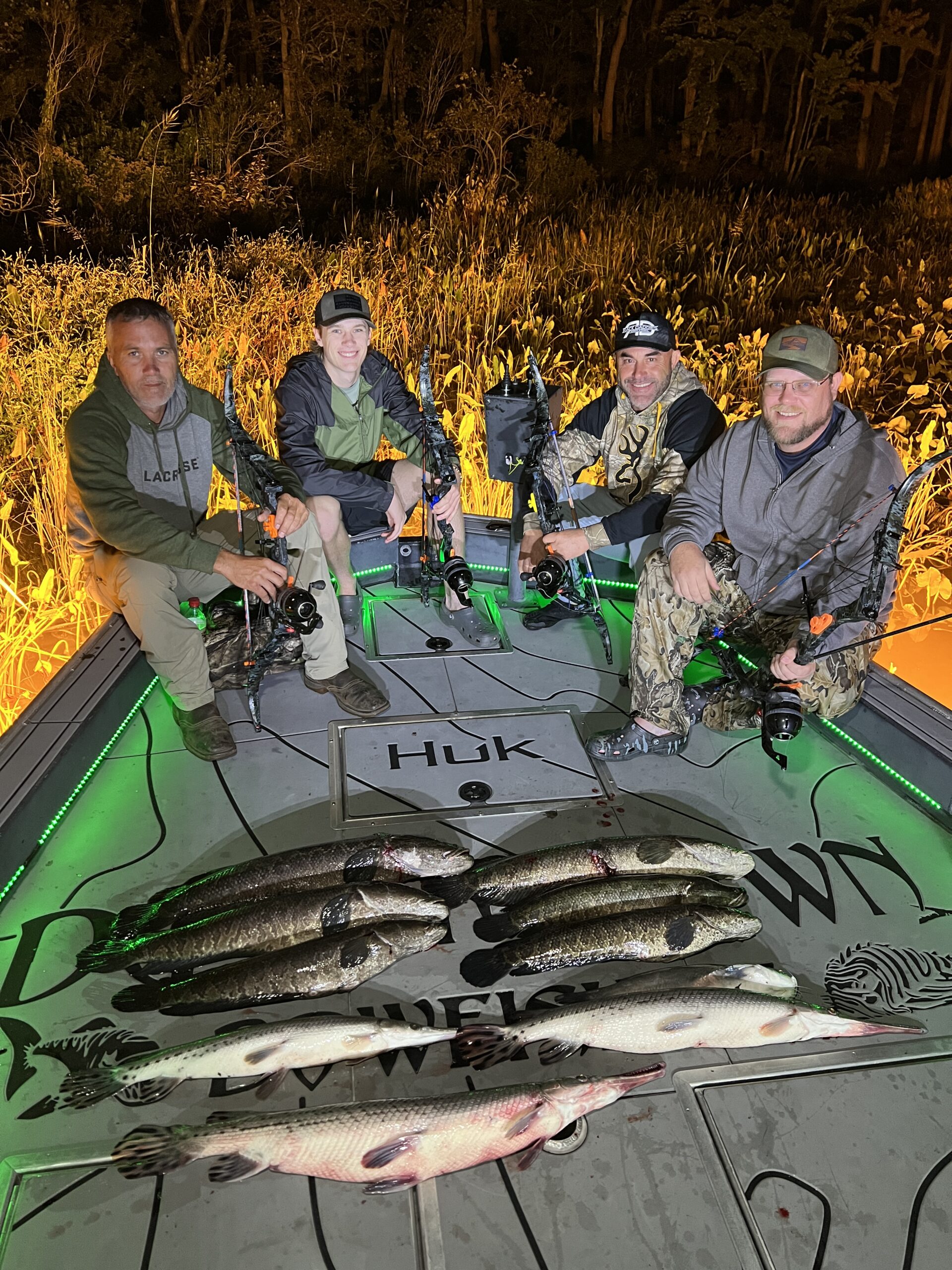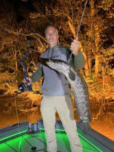 Captain Marc Spagnola of Dusk to Dawn Bowfishing was back on the river last night and he showed his shooters a very good time. My buddy Steve “Deadeye” Goodley and crew had a great night with some big snakeheads and some gar.
