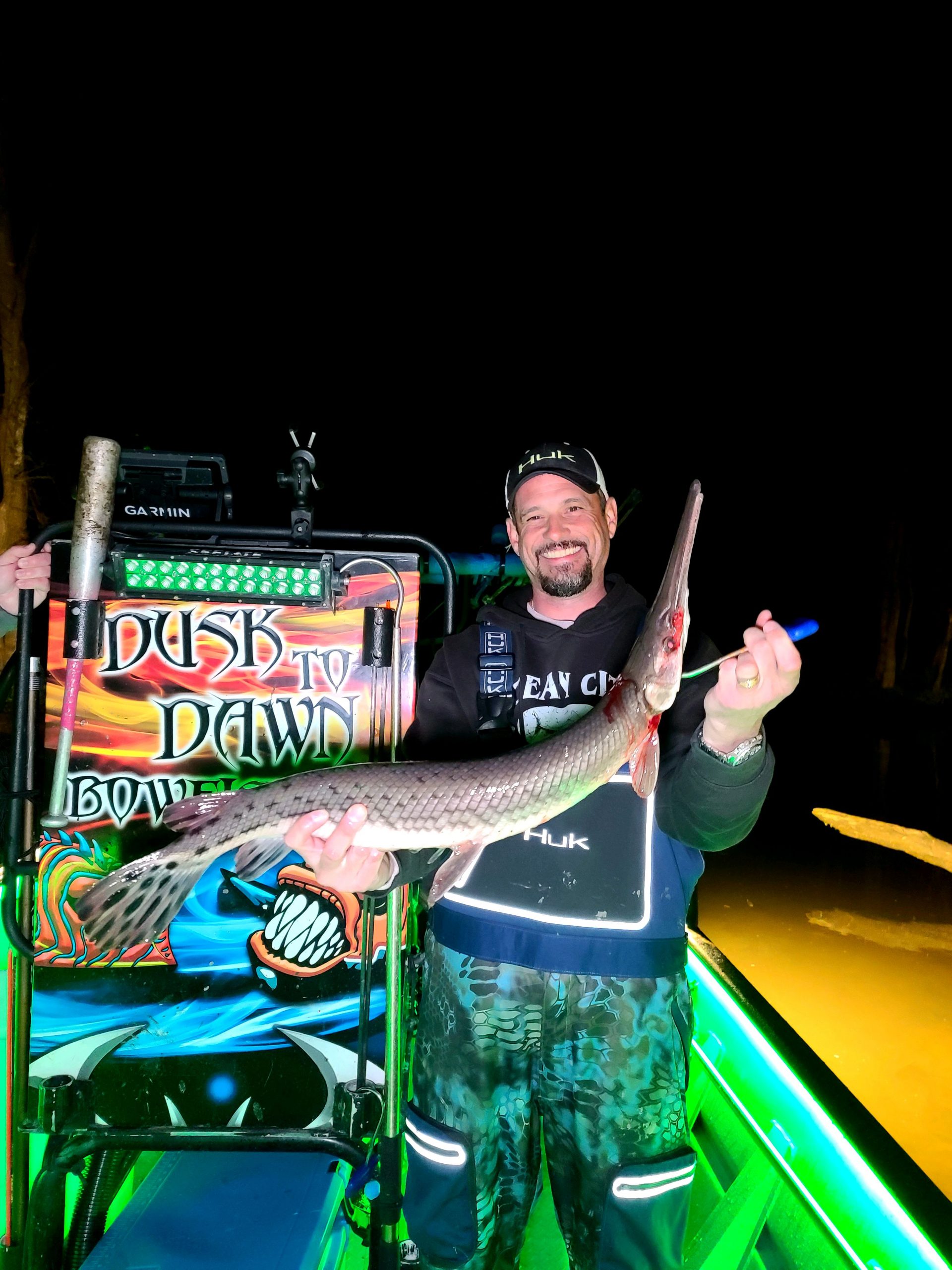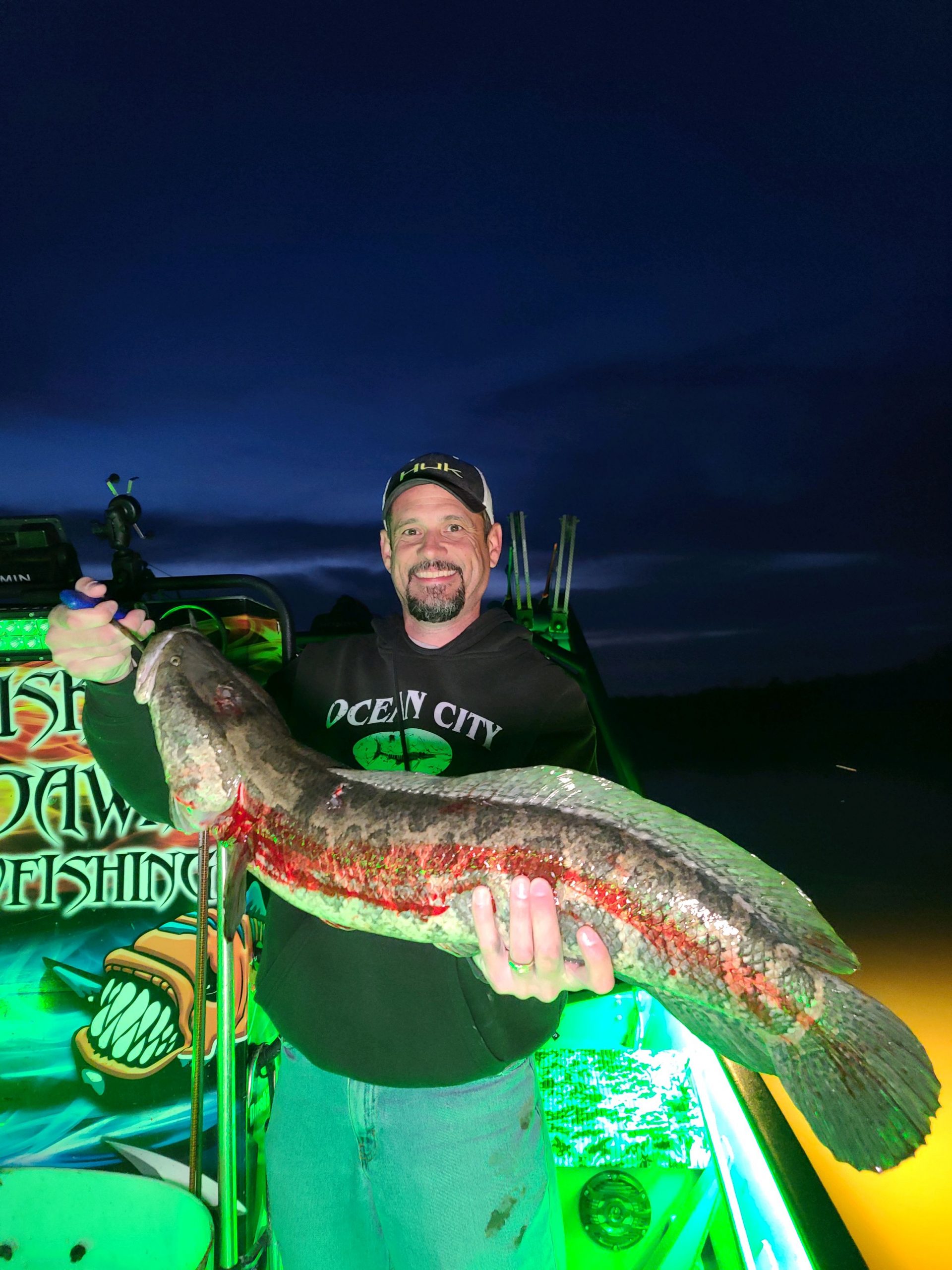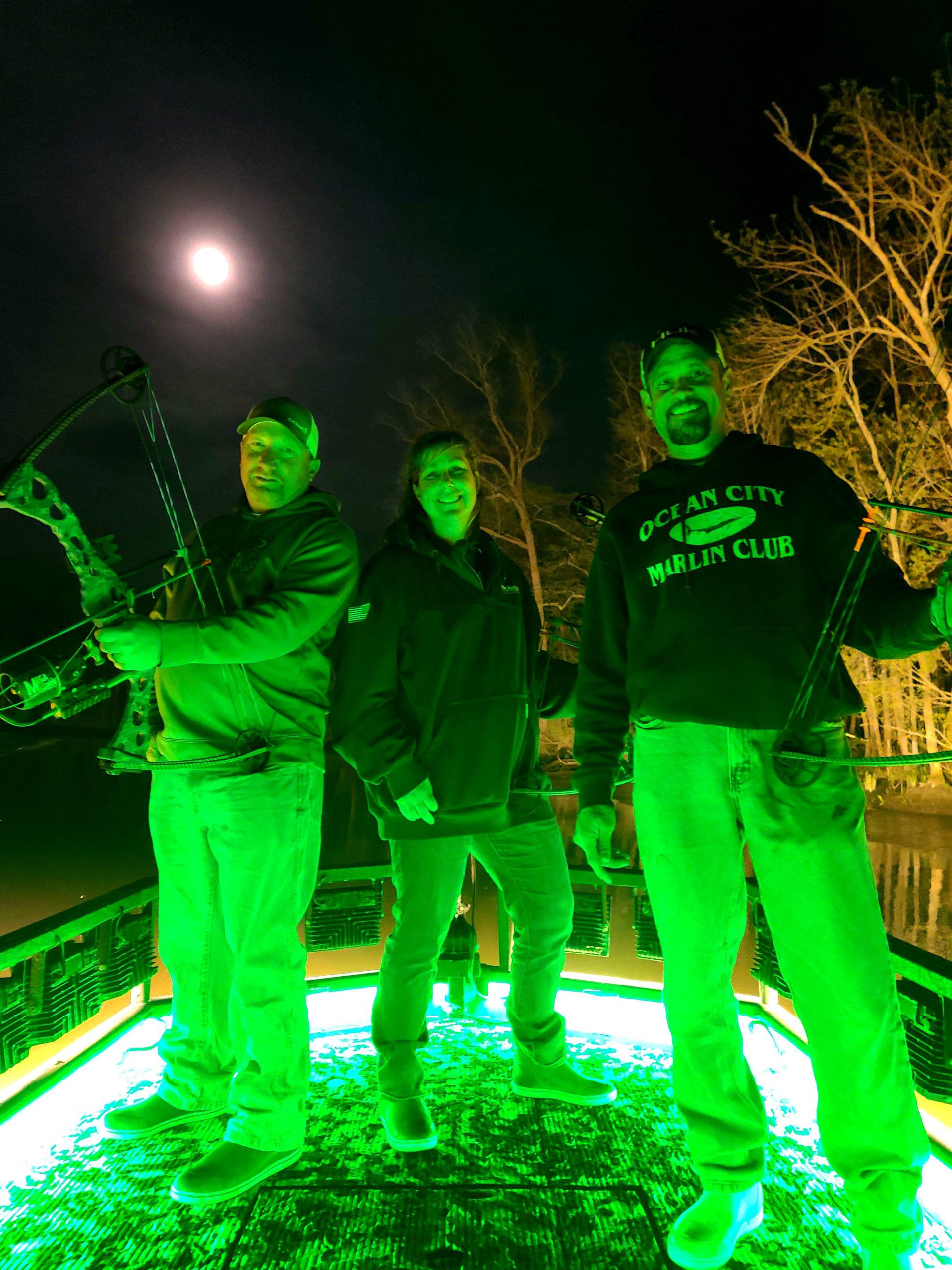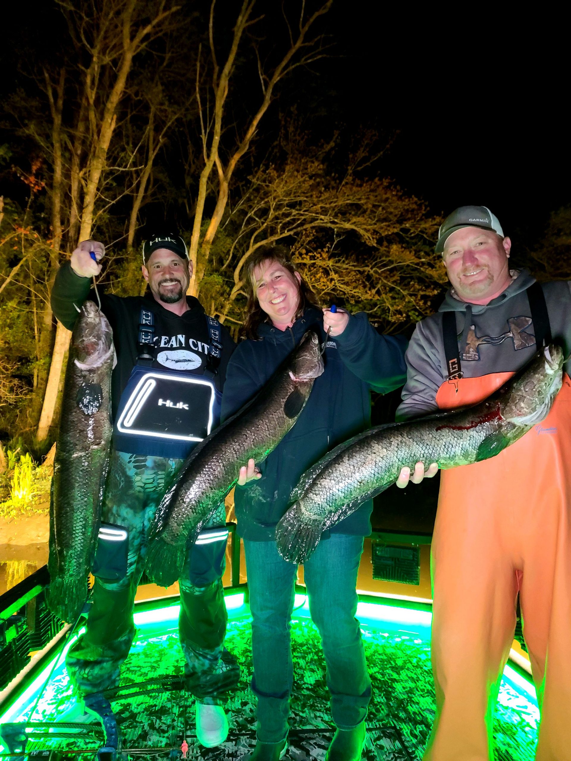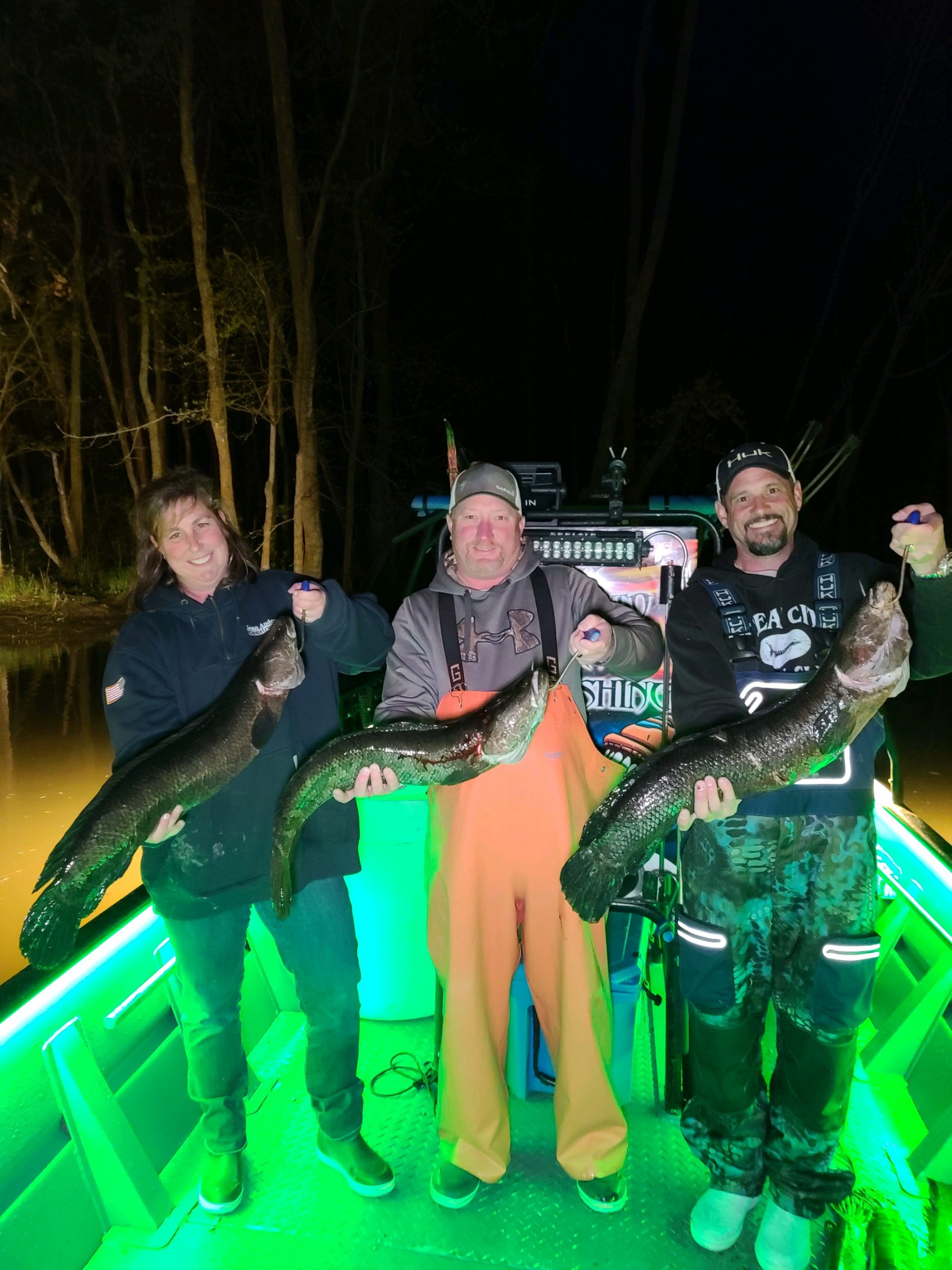 Last night during the nighttime calm Captain Marc Spagnola of Dusk to Dawn Bowfishing had my very good friend Jen Pettolina out with guests Chris Evans of the Last Call and Ryan Freese of A Salt Weapon III for some epic dusk til dawn bowfishing action. The group had a great time and put the arrow in some really good snakeheads up to 10.3 pounds and a couple of bonus gar. It was a great trip with great people!