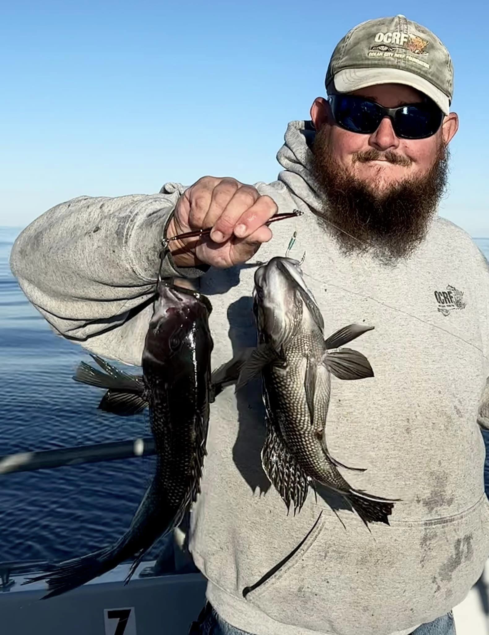 Dave Weller and Jeff Weeks had a good jetty session today with three keeper tautog and two black drum.