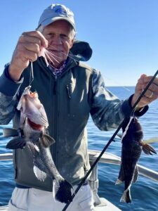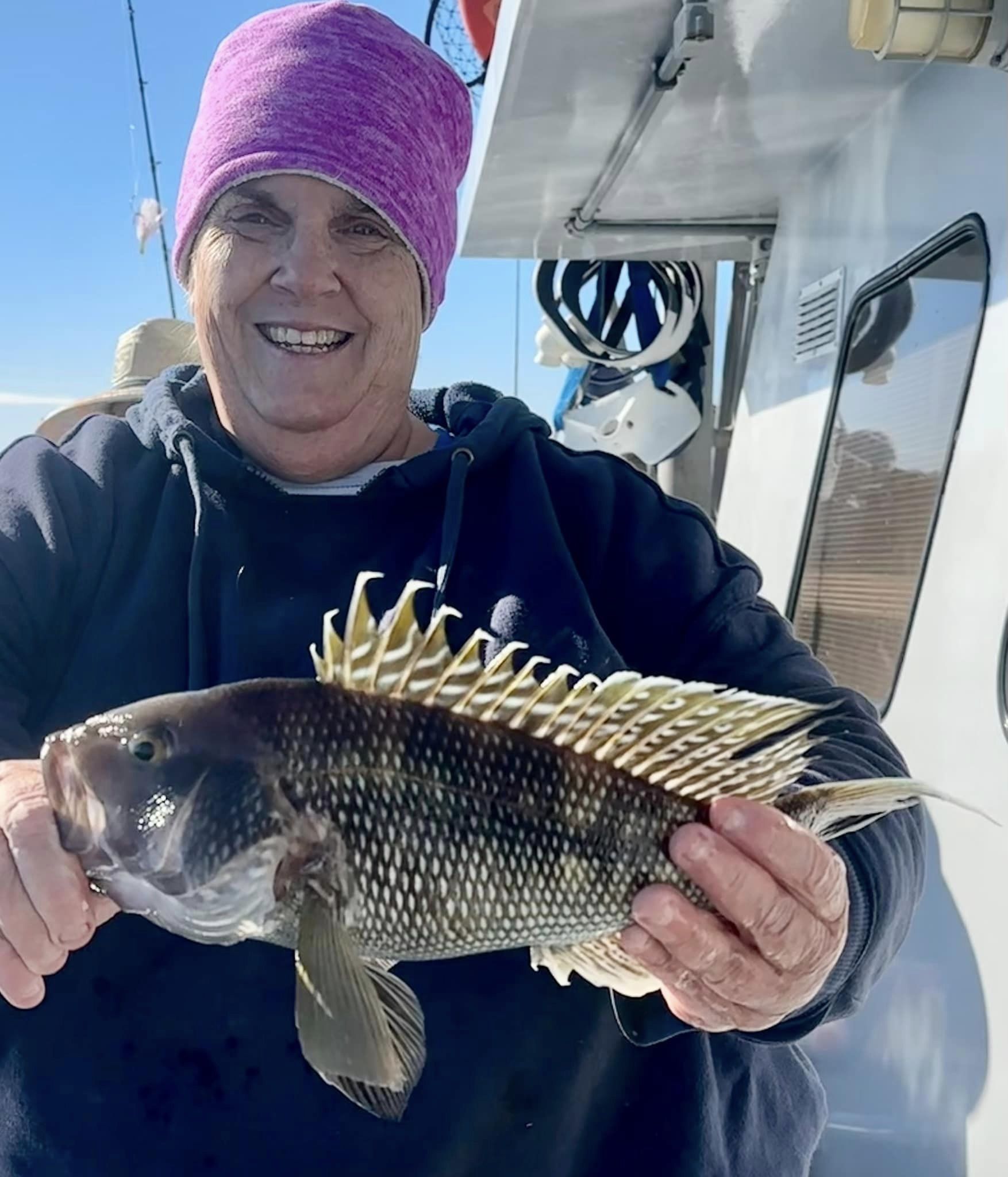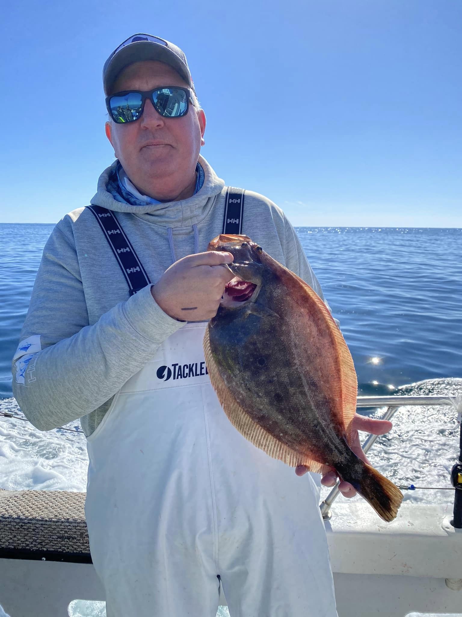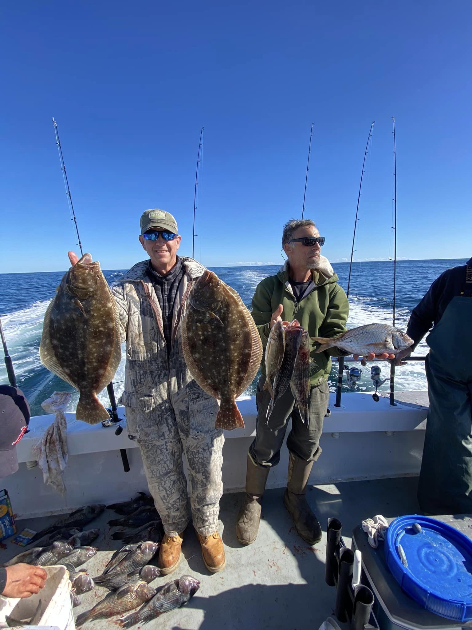 Captain Chris Mizurak of the Angler had a nice day of it today and reported a mixed bag with sea bass, flounder, bluefish and even some nice porgy (scup).