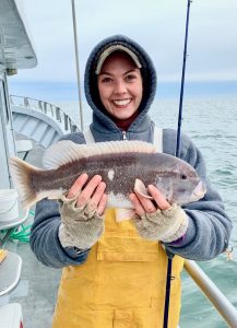 The Captain’s Lady, Courtney Thompson, put dinner on our table with a tasty little bull tog.