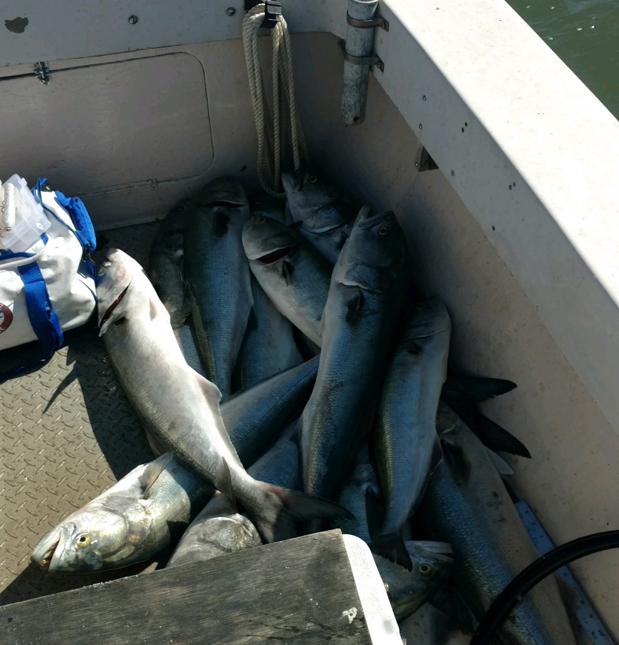 John Witmyer of Crabs to Go was out with Big Bird Cropper this morning and the boys found a pile of bluefish…..literally…..a pile.