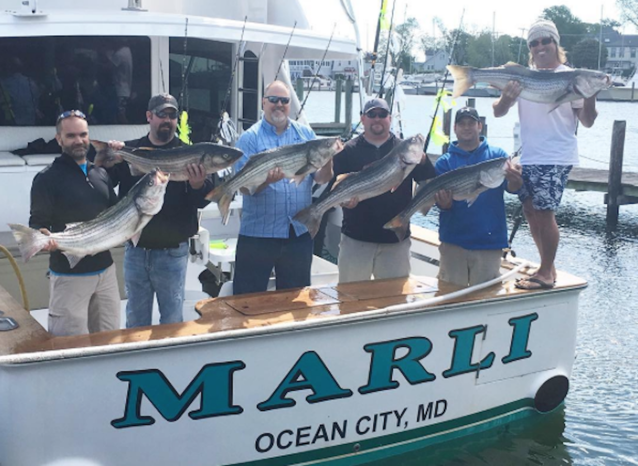 Adam Pattisall and his Increditek crew whacked the rockfish today and made it back to the dock in time for an early lunch. They were fishing with Captain Mark Hoos and mate Mark Stephens on the charter boat MARLI in Solomon’s Island, MD.