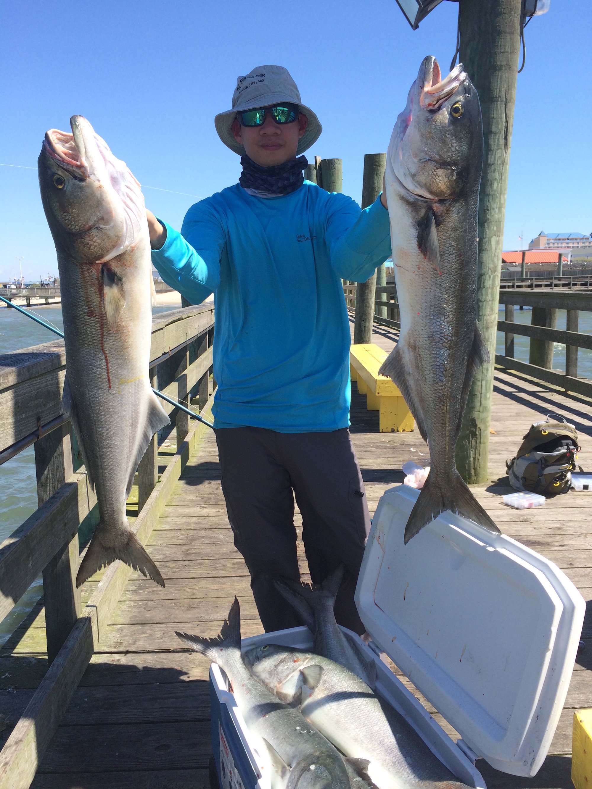 I’ve gotten a couple more Facebook submissions with some photos of anglers that are having some good luck with the bluefish in the back bay. Cayman Man said fishing at the Oceanic Pier has been “superb.”
