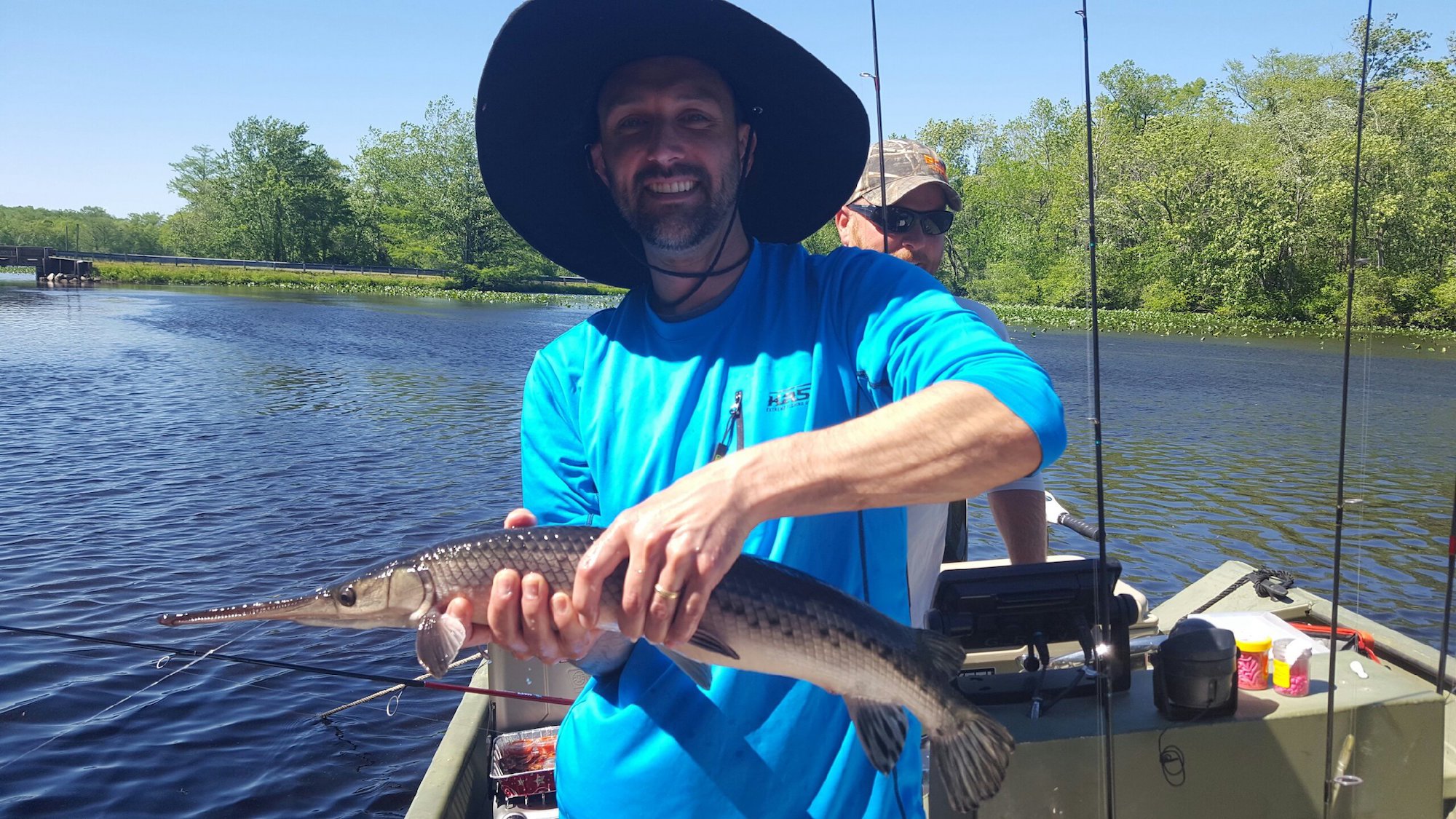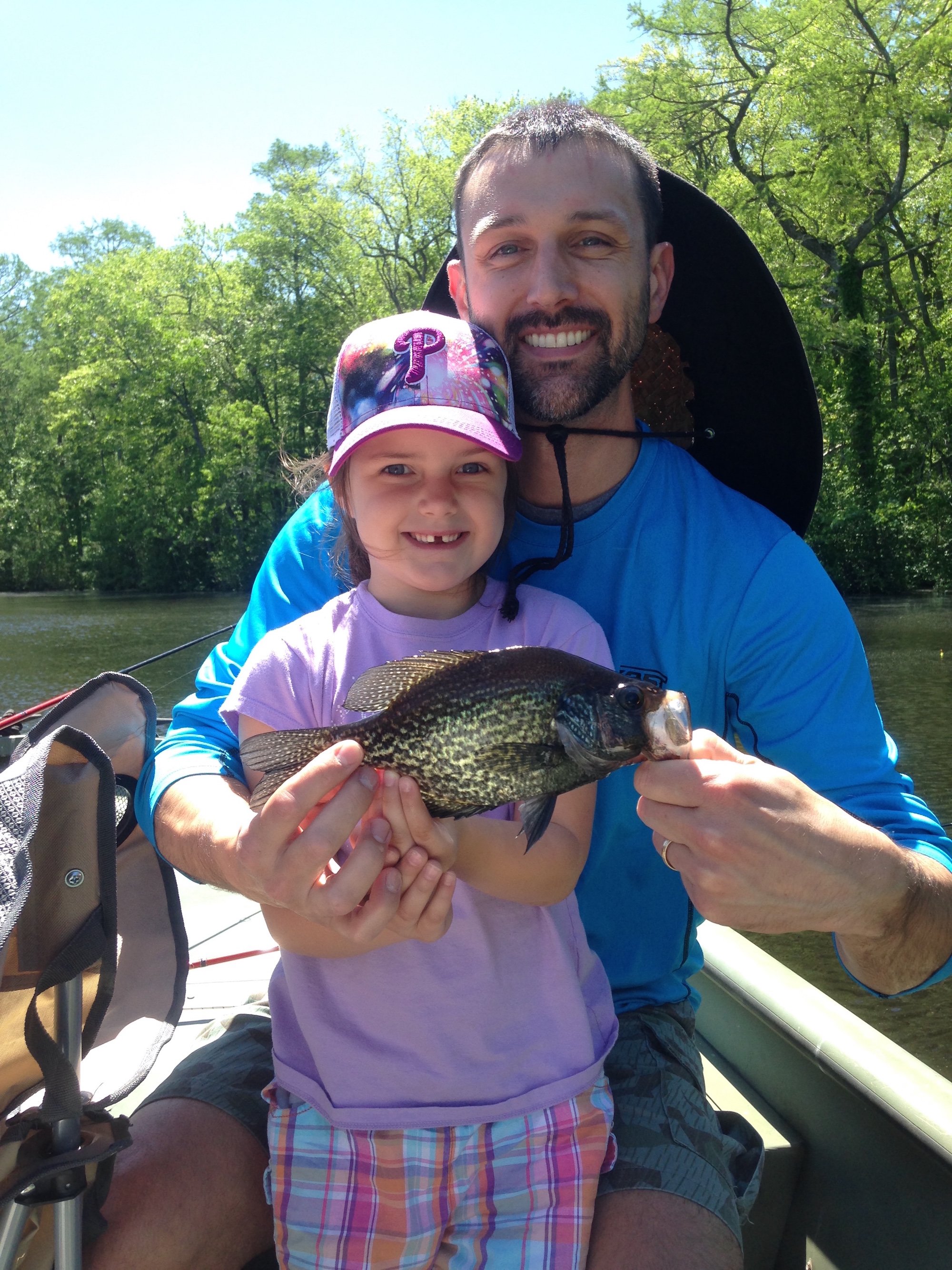 Captain Brian Behe of the inshore charter Buffalo Hunter Guide Service was on the scenic Pocomoke River today with the Trager family from Ocean City, NJ and endured the high winds and a very high tide to have a nice day. Captain Brian put the Tragers on some good crappie fishing with fish up to 13″, a couple of catfish and a couple of really big gar. Throw in some Crabs to Go crab crakes from the grill during the trip and that’s one awesome day on the river.