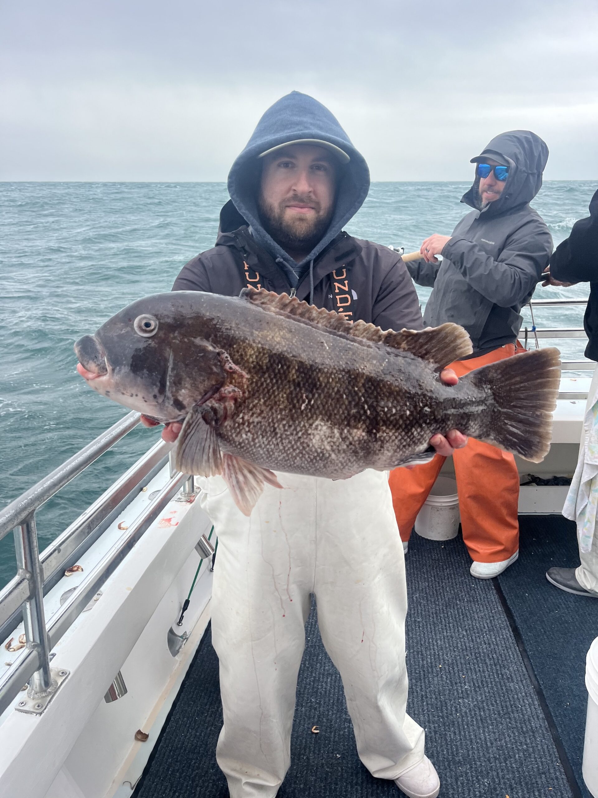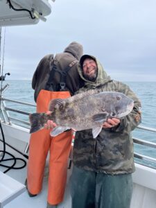 Today was a much different weather day than we had yesterday with temps only in the 50s and cloudy skies for most of the day. The good news was that the wind died down a bit and the toggers were able to get back to the tautog grounds.