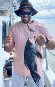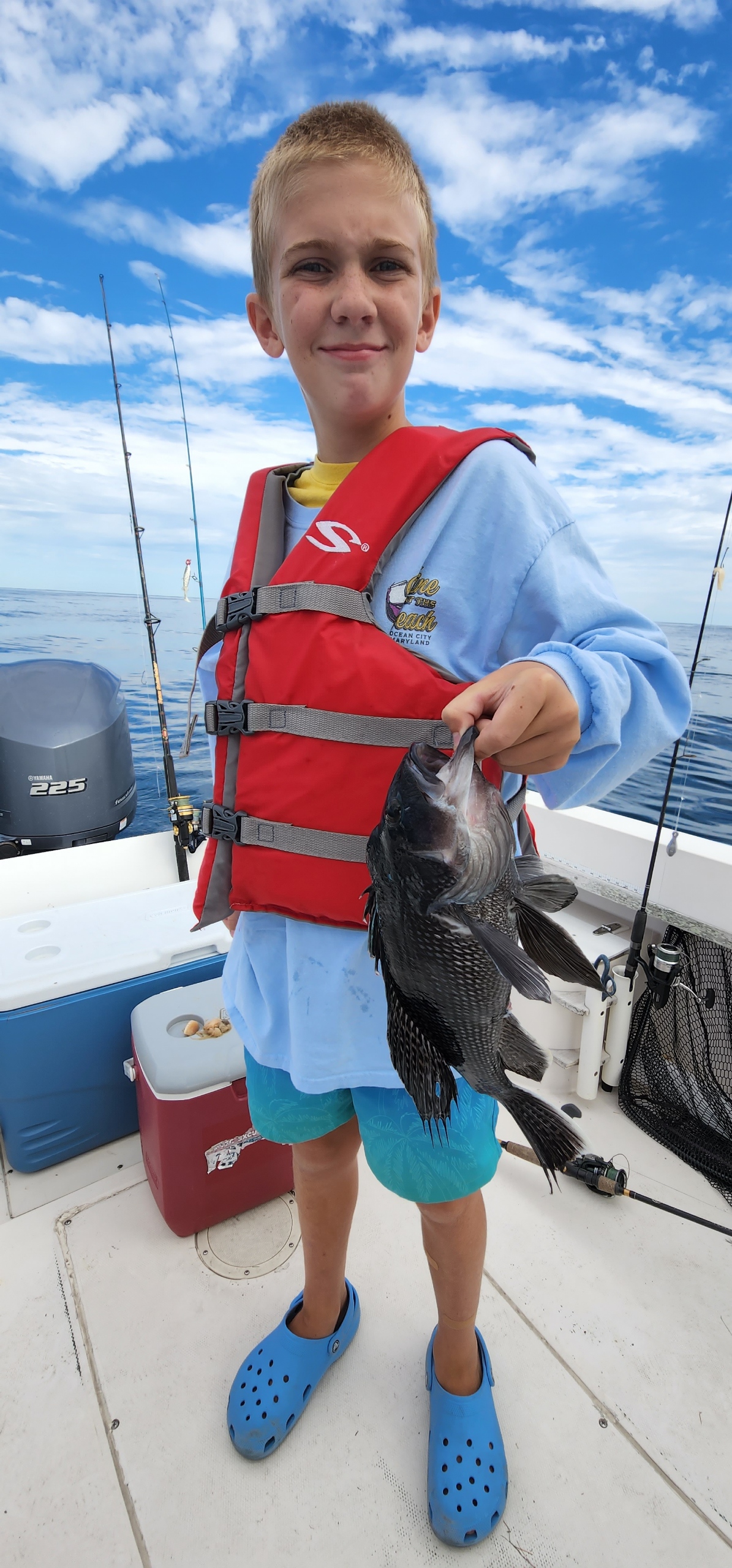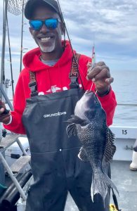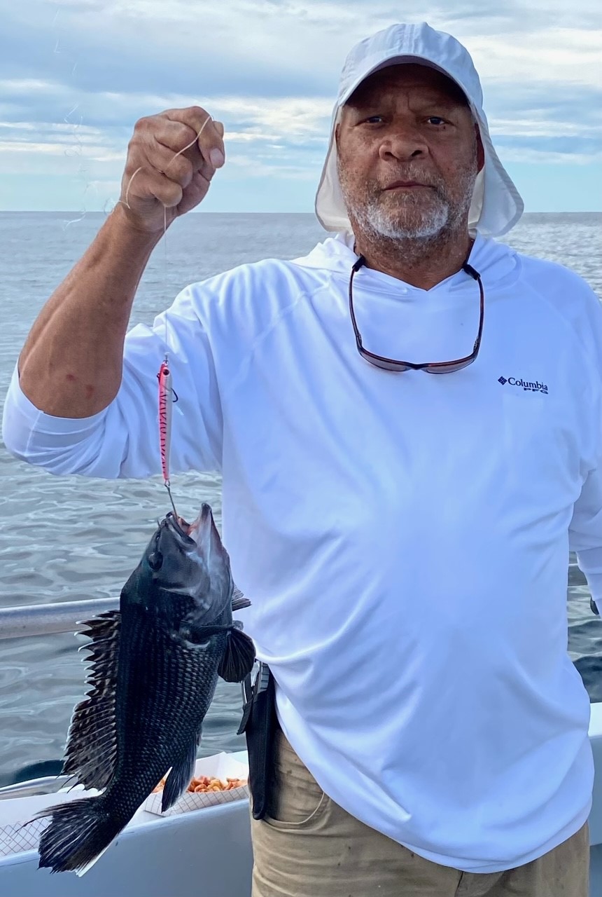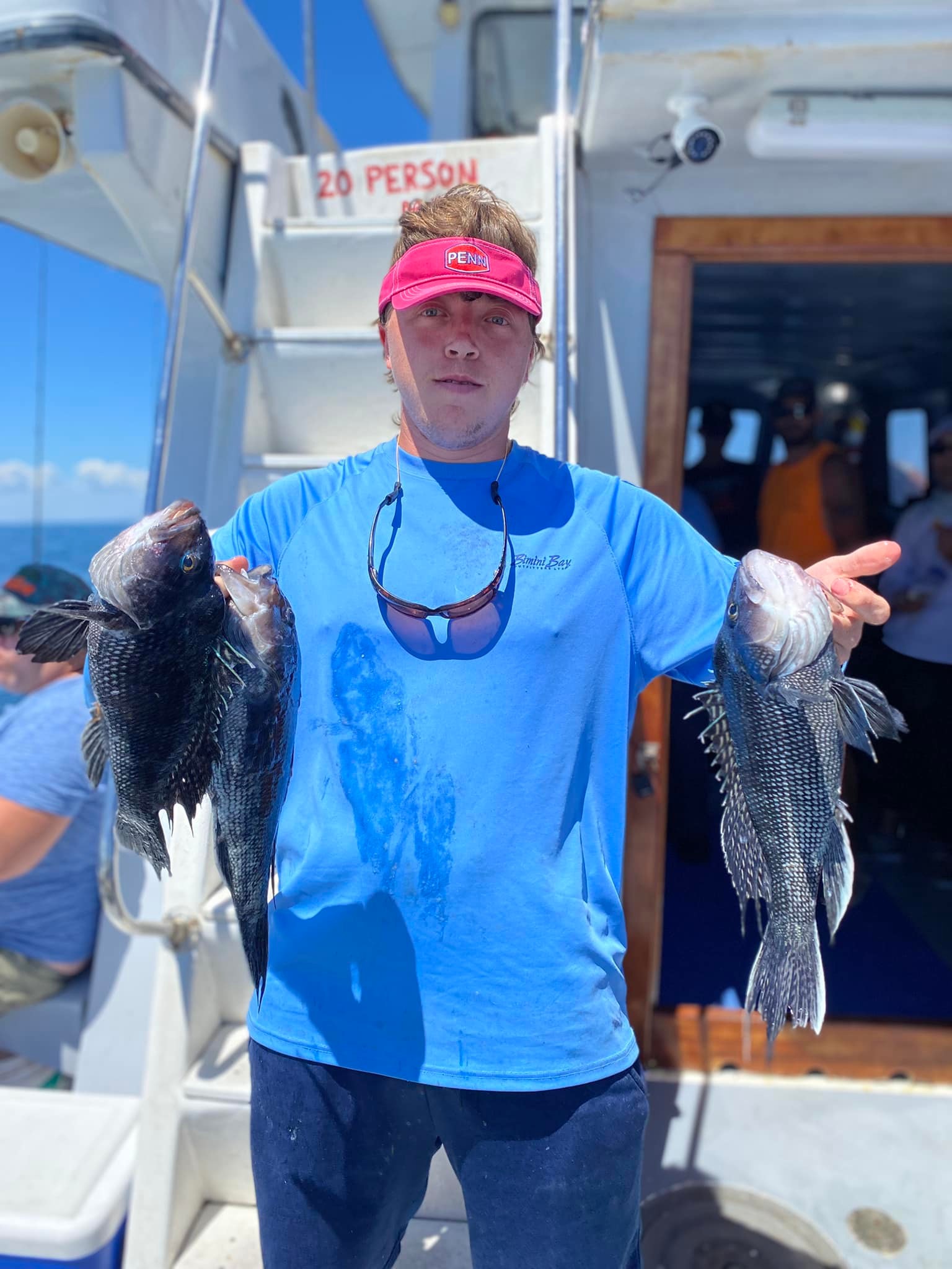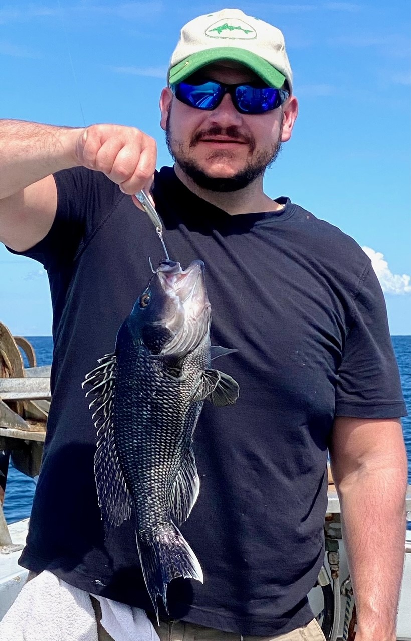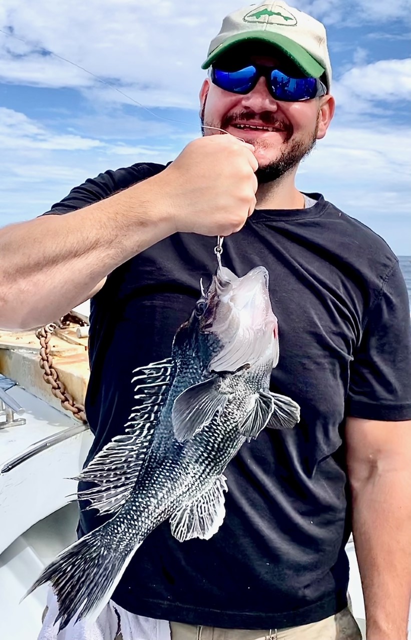 Matthew Brannan and his best bud Justin Allred fished with Matthew’s dad Brian over ocean structure today and had six keeper sea bass up to 16″.