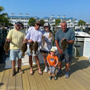Flounder fishing is picking up a bit in our back bays with more fish being caught on the clean water of the high tide. There are still way more throwback sized fish than there are keepers, but if you use some larger baits and wait for a bite, you could catch a nice one this time of year. Captain John Prather of Ocean City Guide Service has had some great trips the past few with plenty of keepers to go around for his folks.