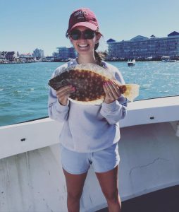 Svend Sheppard found his first keeper of the summer when he found this 17.5″ flattie in the Thorofare using the Fish in OC Deadly Double in chartreuse with a white Gulp.