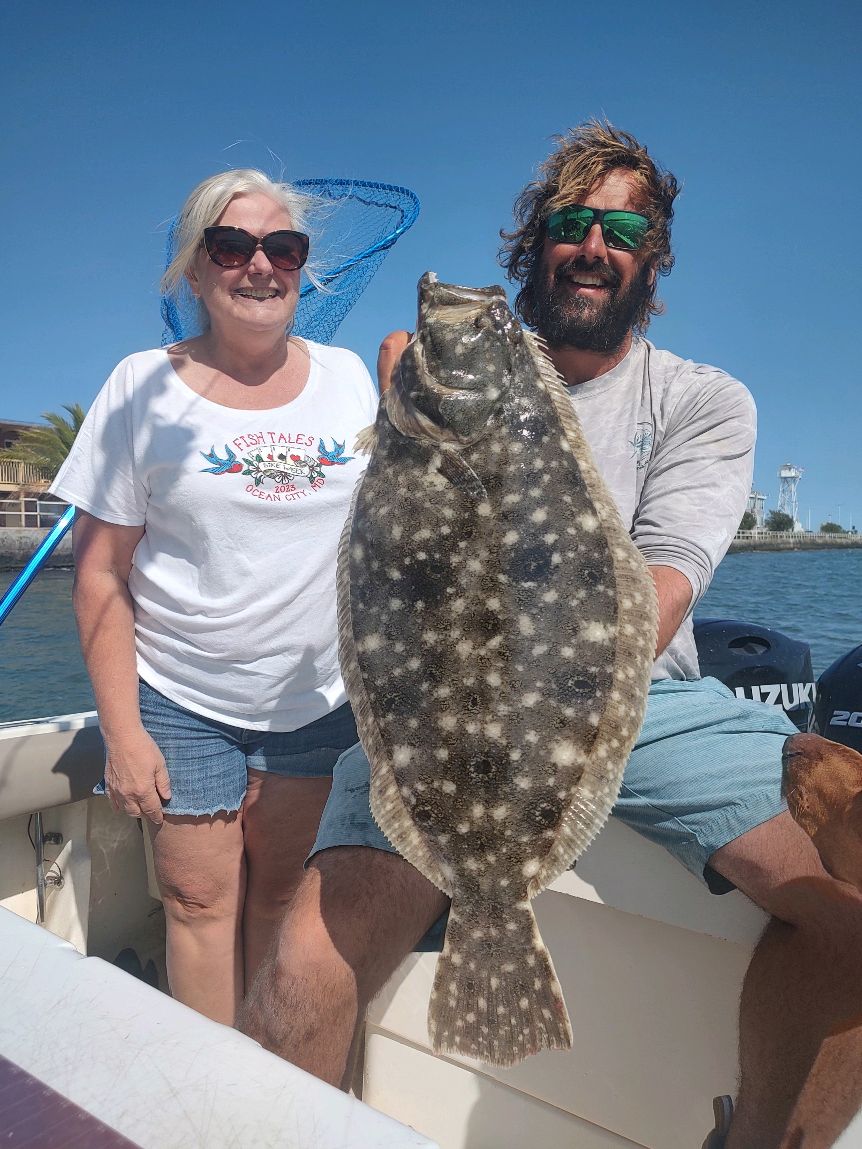 Captain Dave Caffrey of On the Run charters has caught a couple of very nice flounder over the past few days. Two days ago it was a beautiful seven pound fish and today it was another doormat of 8.5 pounds. Angler Linda Stauffer of Mechanicsburg, PA caught the big flounder on a live bait in the OC Inlet.