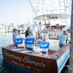 The crew of the private boat Something Simple had a great day with three first time white marlin release anglers. Photo by Sunset Marina.